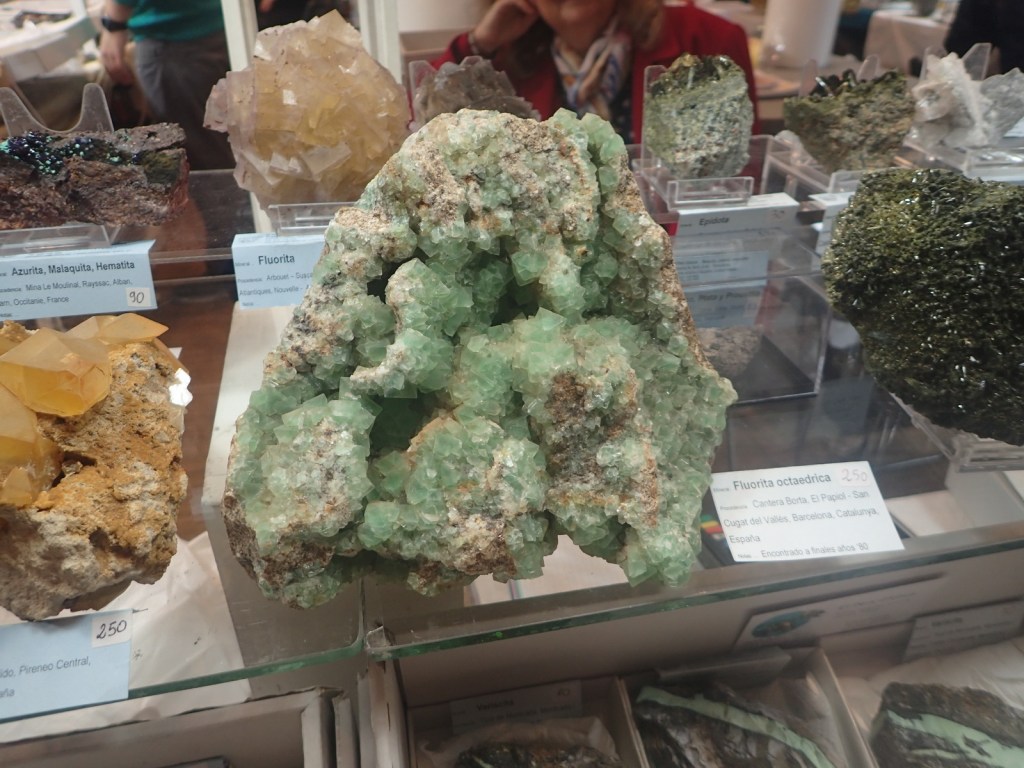 Els nostres companys del Grup Mineralògic Català, organitzadors de la fira, estaven just a l’entrada, així que la primera parada va ser per saludar-los, demanar per les novetats i recollir el nou número de la revista Mineralogistes de Catalunya.