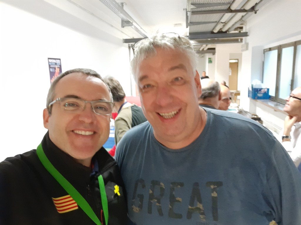 Però en mig d’aquest paradís del micro i la sistemàtica, no vam oblidar quina era la nostra missió principal, que no era una altra que donar a conèixer i promocionar la Trobada de Camprodon-Rocabruna 2020. Així que, de bon començament, vam col·locar els pòsters promocionals de la fira en els llocs més visibles i vam començar a recórrer totes les taules per deixar un fulletó informatiu en italià, alhora que explicàvem a cada participant el contingut i les “meravelles” que li esperaven si es decidia a visitar-nos. També els vam fer partícips del magnífic paisatge i millor gastronomia d’aquestes valls pirinenques. S’ha de dir que la gent, en general, es mostrava força interessada i en molts casos vam haver de precisar geogràficament la ubicació de Camprodon al mapa, la distància a la qual es trobava de la població de l’interessat i les possibles vies per arribar-hi. També vam donar a conèixer la fira de Sants i la de Sant Celoni, que serà el següent cap de setmana de Camprodon; una bona excusa pels que venen de fora de fer turisme i/o turisme mineralògic.