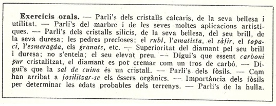 Els “Exercicis orals” es focalitzaran en ressaltar l’existència d’alguns minerals, esmentant tant la seva bellesa com les seves diverses aplicacions: