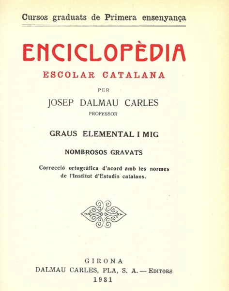 - (1) Enciclopèdia escolar catalana. Josep Dalmau Carles, 1931.