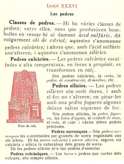 Seguim avançant i en la lliçó XXXVIII ens trobem amb les explicacions bàsiques del guix i les pissarres, sempre basades en les reaccions de les mostres amb àcids: