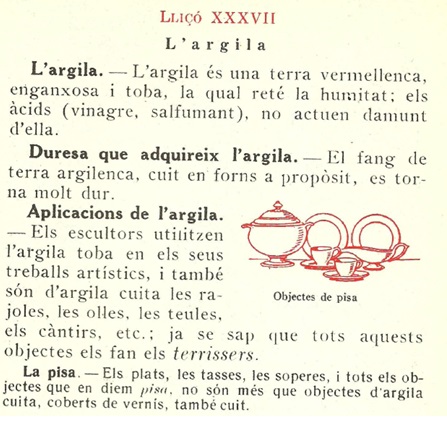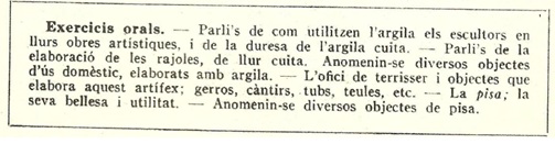 I pel que fa als “Exercicis orals”, aquests es focalitzen a ampliar els coneixements de la utilització de l’argila tant en el camp artístic com en l’industrial: