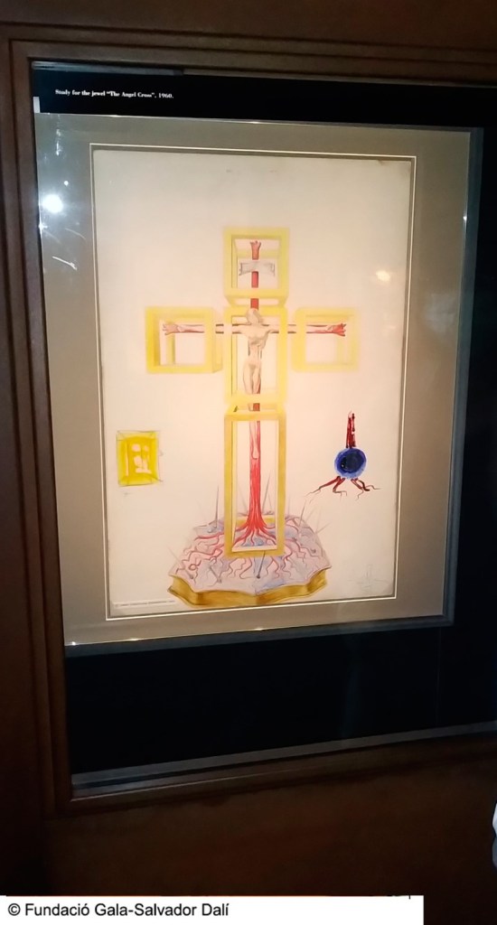 Les joies exposades al museu, a part de la fascinant pedreria de talla (amb diamants, robins, maragdes, safirs, aiguamarines, topazis, etc.), s’assenten sovint en bases de minerals naturals com el quars, l’òpal, el xilòpal o el beril. Una d’aquestes meravelles és la “La Creu de l’Àngel” (1960) que el mateix Dalí diu que representa: “el tractat de l’existència: la transformació gradual des del món mineral fins a l’àngel”. L’escultura, segons l’artista, s’ha “construït sobre la matemàtica del número 12. El mateix cub que immobilitza l’estructura de la Creu de corall es basa en el número 12” com les dotze agulles de la base, que recorden el moviment de les punxes de les garotes. Per a la cultura occidental, el dotze és simbòlic: representa el número de la perfecció.