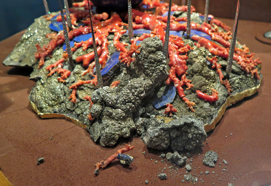 Tanmateix, personalment crec que el senyor Dalí hagués estat molt feliç de substituir-la per una magnífica pirita peruana, plena de reflexos daurats (com d’or), d’aquelles que en fan boles, piràmides i obeliscs o que serveixen de base per la “Pilota d’Or” que tantes vegades ha guanyat el 10 del Barça. Però el senyor Dalí no hi és per dir-hi la seva (encara que hi sigui només de cos present). Per tant, cal seguir la opinió dels experts i preservar tot allò que és original, tot el temps que es pugui.
