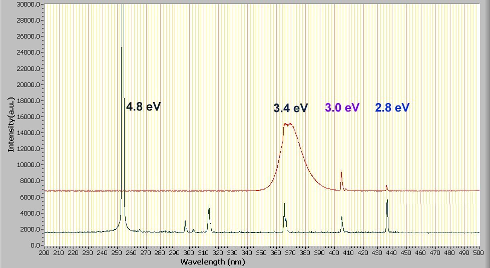 Els espectres indiquen que el vidre d’unes ulleres bloqueja totalment la radiació d’ona curta que és la que podria provocar més danys als ulls. Tant si les ulleres són fotocròmiques (les que es tornen una mica fosques amb la llum del Sol) com si són de vidre ordinari, també aturen la major part de la radiació d’ona llarga. Fins i tot el vidre prim d’un portaobjectes de microscopi atura completament la radiació d’ona curta (el tall és cap uns 310 nm) i deixa passar la d’ona llarga.