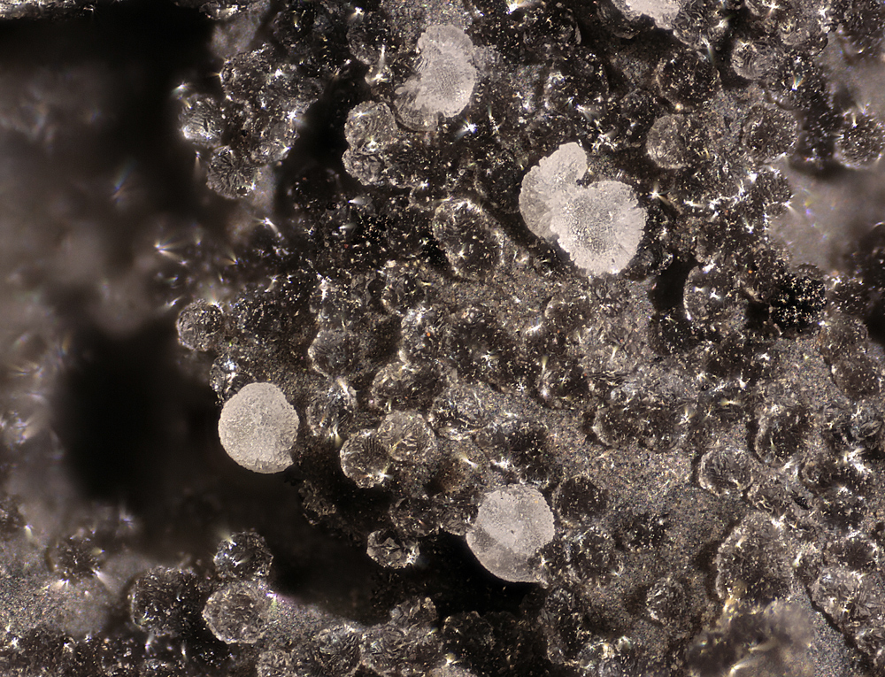 En algun d’ells vam observar, dins els vacúols, la presència de petits agregats globulars de cristalls incolors a blanquinosos, transparents a opalins i molt brillants.
