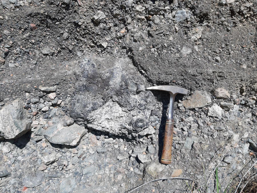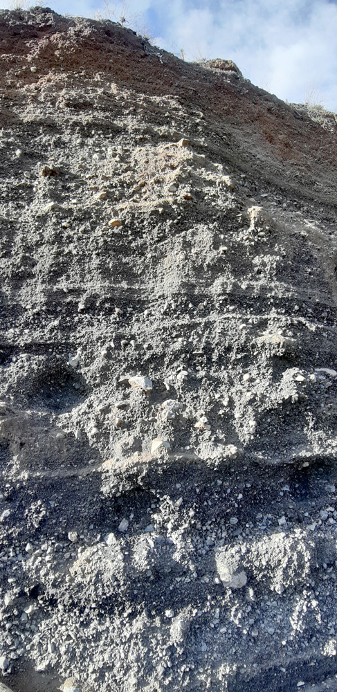 Prop d’un camp de conreu al costat de Can Costa, vam recollir uns fragments de materials escoriacis amb nombrosos vacúols. Aquests materials negres porosos porten inclosos fragments lítics com: albita, quars, granits, gneis, olivina i vidres volcànics.