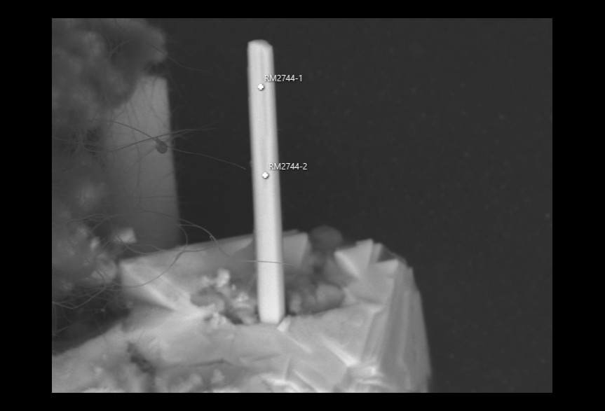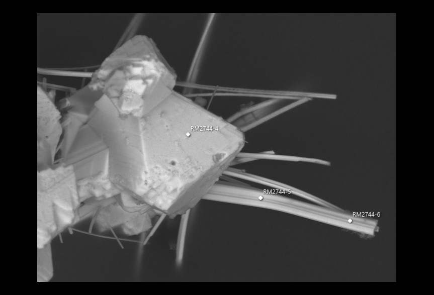 Comparant els resultats de les anàlisis obtinguts sobre les dues tipologies d’agulles, podem deduir que es tracta de dues sulfosals diferents, on les de tipus 1 correspondrien a una sulfosal de bismut, plom i coure, mentre que les de tipus 2 correspondrien a una altra sulfosal de bismut, plom i argent.