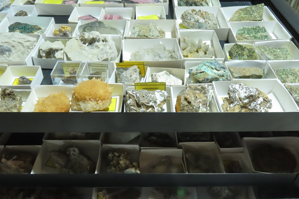 No van faltar boniques fluorites asturianes de moltes localitzacions: la mina “Moscona”, La Collada, Berbes… També piromorfites de Vegadeo (Astúries) o de la clàssica localitat d’El Horcajo (Ciudad Real), dolomites d’Eugui (Navarra), guix varietat alabastre de la Cañada del Fenollar (Alacant) i un gran assortit de material de La Unión (Múrcia): barita, calcita, smithsonita, guix, goethita, en especial guix pseudomòrfic d’aragonita, barita amb conicalcita i guix d’Almendricos, a Lorca.