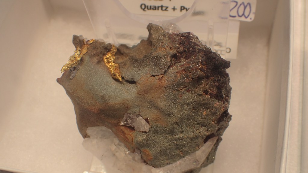 Per als amants dels minerals catalans hi havia molt on triar. Algunes mostres de localitats menys conegudes o poc vistes a les fires com ara barita de Collformic, dickita verda de Sant Hilari Sacalm, calcita de Montrodon, diòpsid del Pont de Suert, hidrozincita, auricalcita i hemimorfita de Casós (Alta Ribagorça), willemita de Sant Fost de Campsentelles (molt ben documentada i estudiada a l’últim número de la revista Mineralogistes de Catalunya) i per últim una bonica curiositat: palletes d’or trobades a la sorra de la platja de l’Escala.
