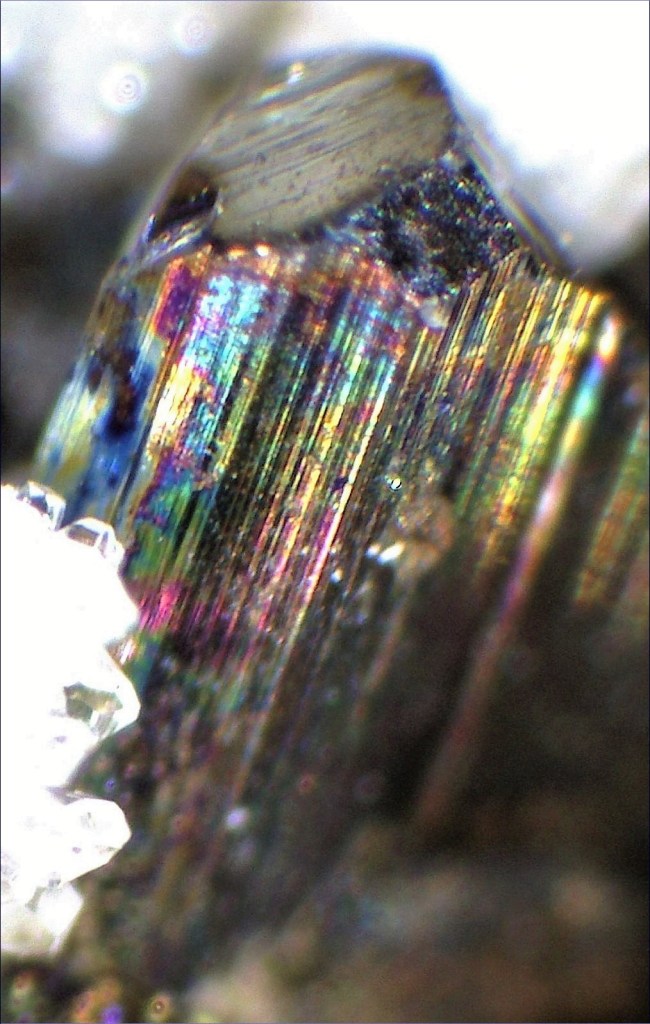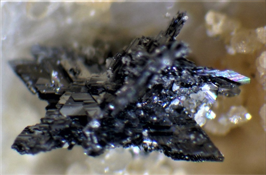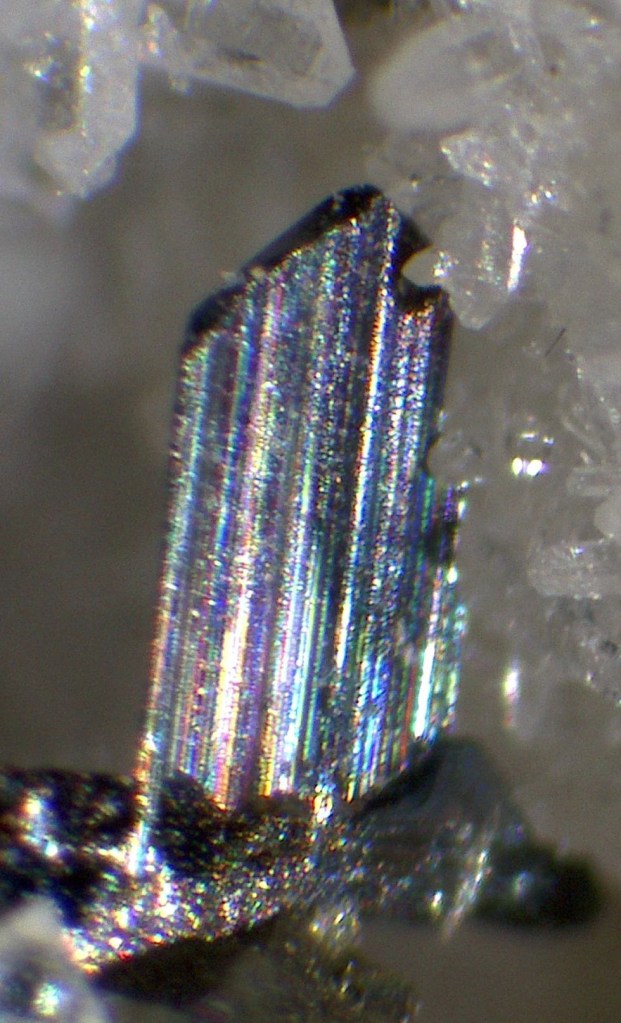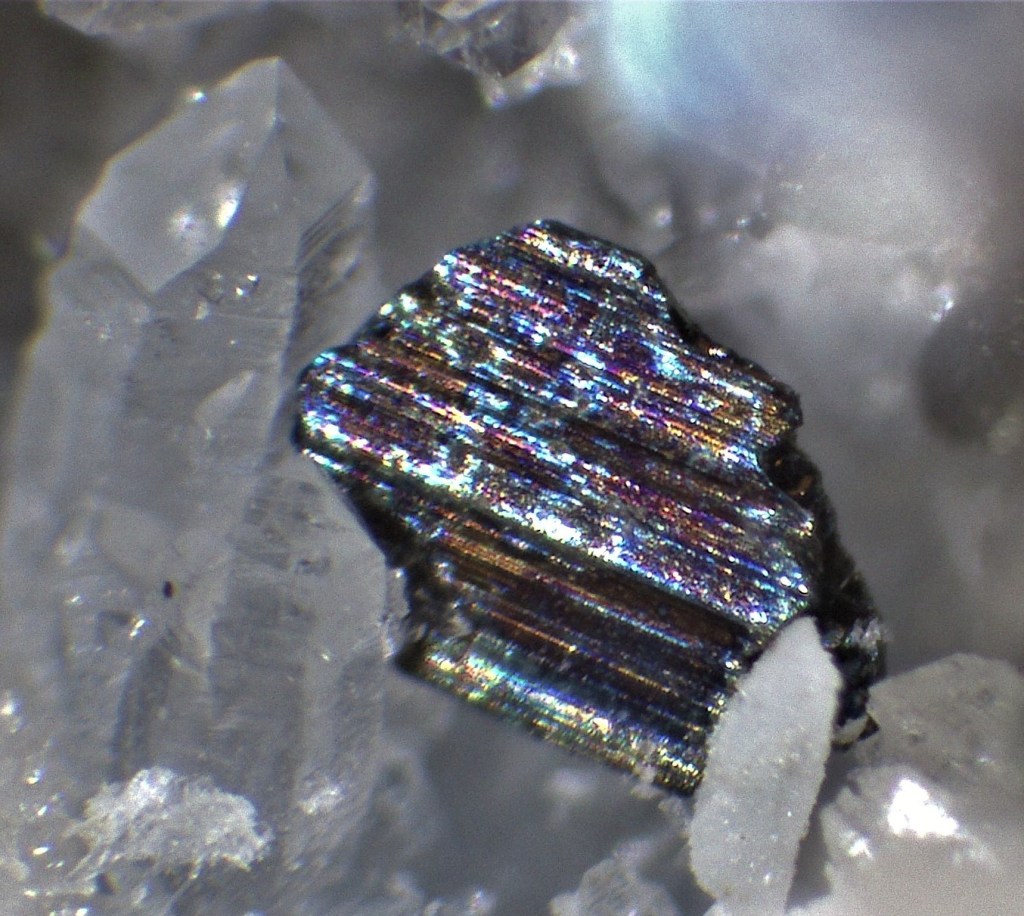 Els cristalls mesuren des de dècimes de mil·límetre fins a diversos mil·límetres. La cerca a les piles del terregall va facilitar la recuperació de nombroses mostres, entre elles espectaculars micromounts.