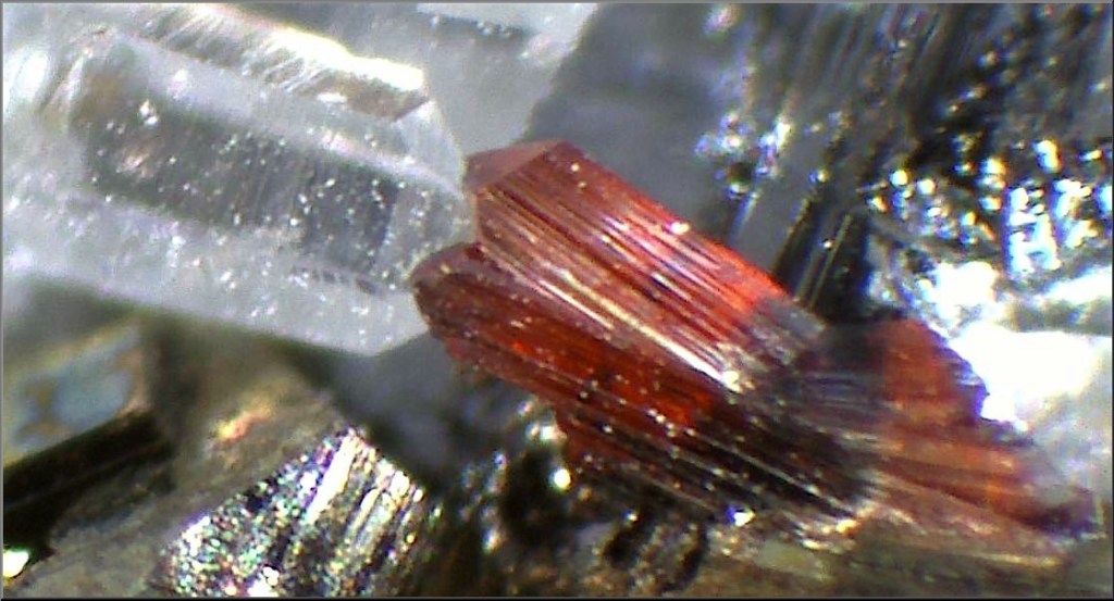 Els reflexos interns i la ratlla vermella de la pirargirita són més pàl·lids que els de la miargirita. La pirargirita del dipòsit Van Silver conté menys de l’1% d’arsènic en pes (Woodside R.W.M. et al, 2000).