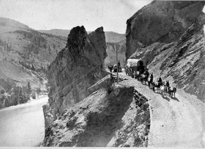 Per a facilitar el transport als camps d’or de Cariboo, James Douglas va encomanar als Royal Engineers la construcció de la carretera del Cariboo, de 650 km de longitud, de Yale fins a Baskerville, evitant així els antics i dificultosos camins a través del canó del Fraser i la Ruta dels Llacs. Una vegada oberta aquella carretera, els trens mulars es van substituir per cavalls i bous.
