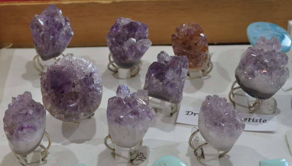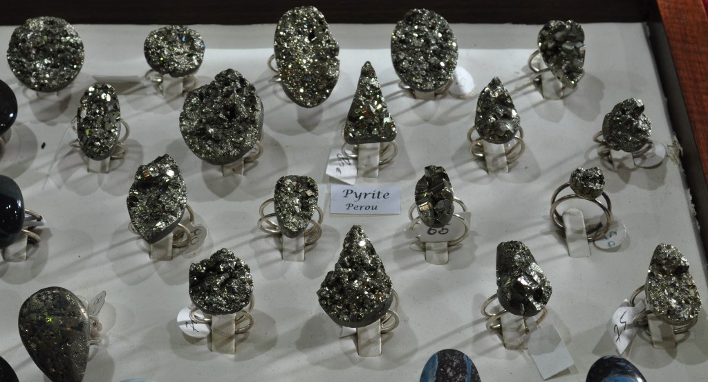 Com he comentat a l’inici de la ressenya, la pedra polida i la bijuteria estaven presents a pràcticament tots els estands (foto 11), destacant alguns “macro-anells” de pirita i d’ametista (fotos 12 i 13).