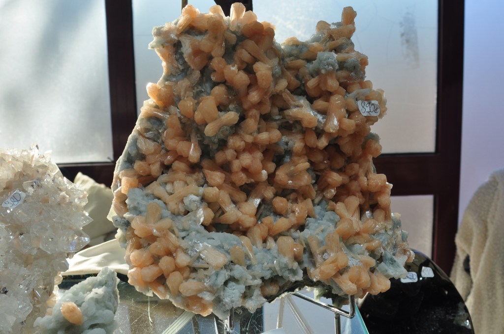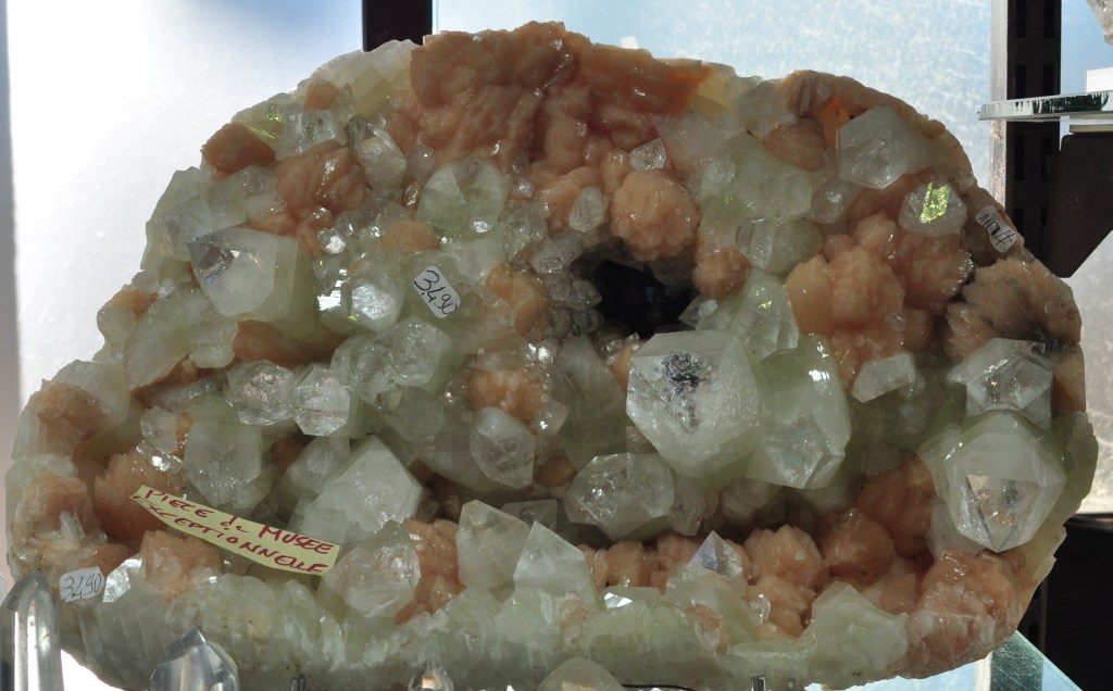 Importadors de minerals de Madagascar com Yvon i Nivo Richard, així com Alain Escudéro, presentaven diverses peces de dimensions apreciables i de les que destaquem alguna fluorita (foto 3) i una espectacular peça de quars Ananas (foto 4), anomenat així pel nom de la mina d’on s’extreu.
