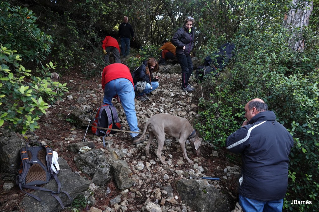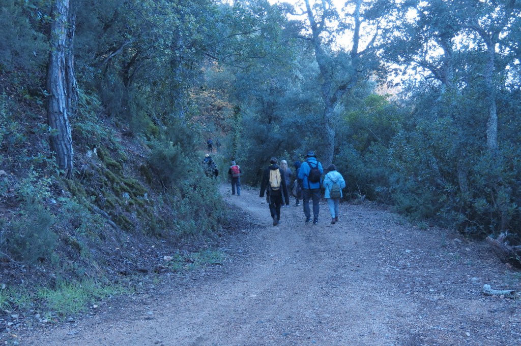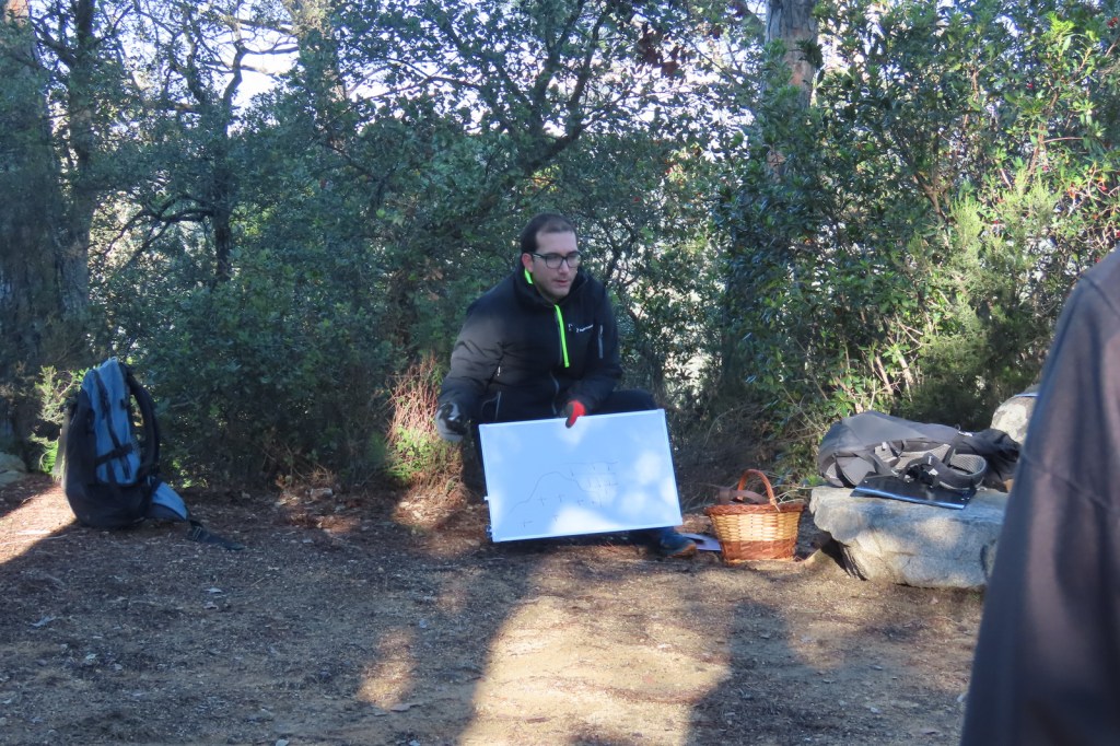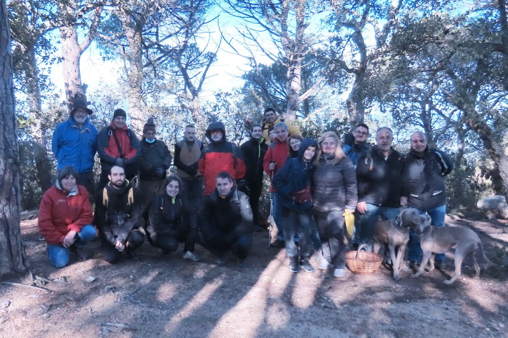 Cap a quarts de dues, vam recollir motxilles i vam enfilar el camí de tornada, amb una baixada un tant accidentada per com n’estava de relliscós el bosc, fins a la pista. Animats per les troballes, i més encara per l’estona compartida, el retorn per la pista va ser prou amè i distret. Un cop a l’esplanada on havíem aparcat, es va donar per finalitzada la sortida.