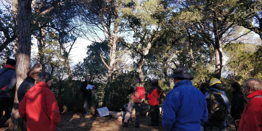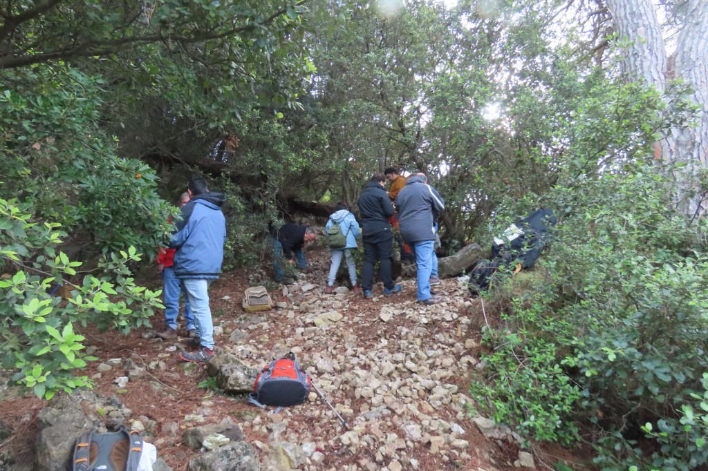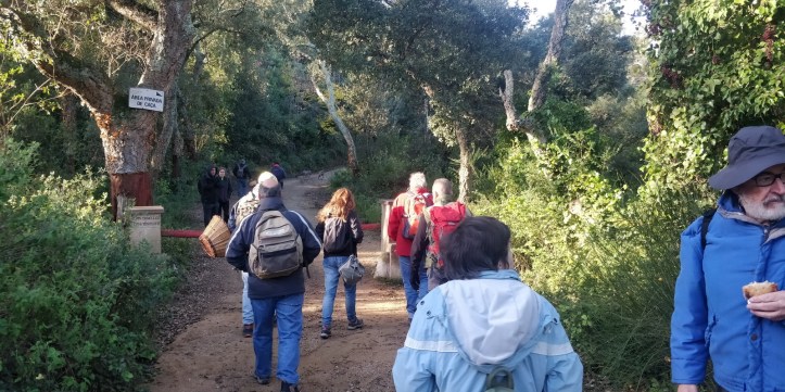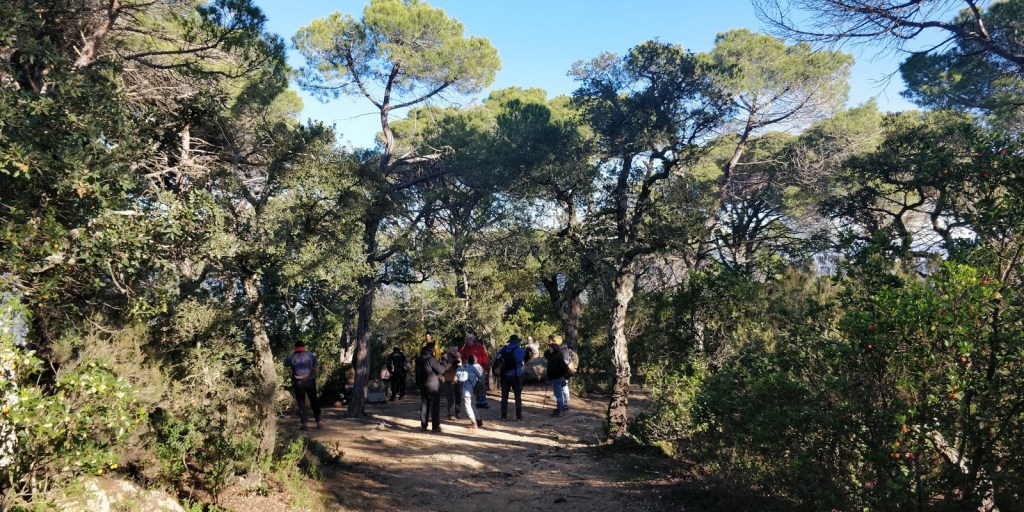 El matí s’havia llevat amb un fred intens i agut, acompanyat d’un vent que augmentava aquesta sensació gèlida. Des de Calella o des de Tordera, endinsar-se al paratge d’Hortsavinyà, dins de la Serralada del Montnegre, és tota una aventura. Malgrat que és tot ple d’urbanitzacions, el perfil és ben accidentat i es combinen carreteres asfaltades i pistes de terra. Arribar al punt de trobada, l’església de Sant Llop, no va estar a l’abast de tothom i el grup es va aplegar una mica més endavant, just abans de la tanca on començava el camí cap a les mines.