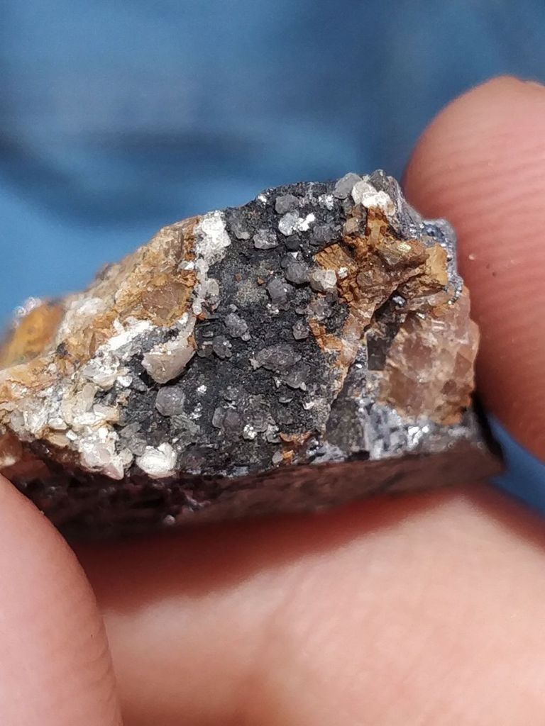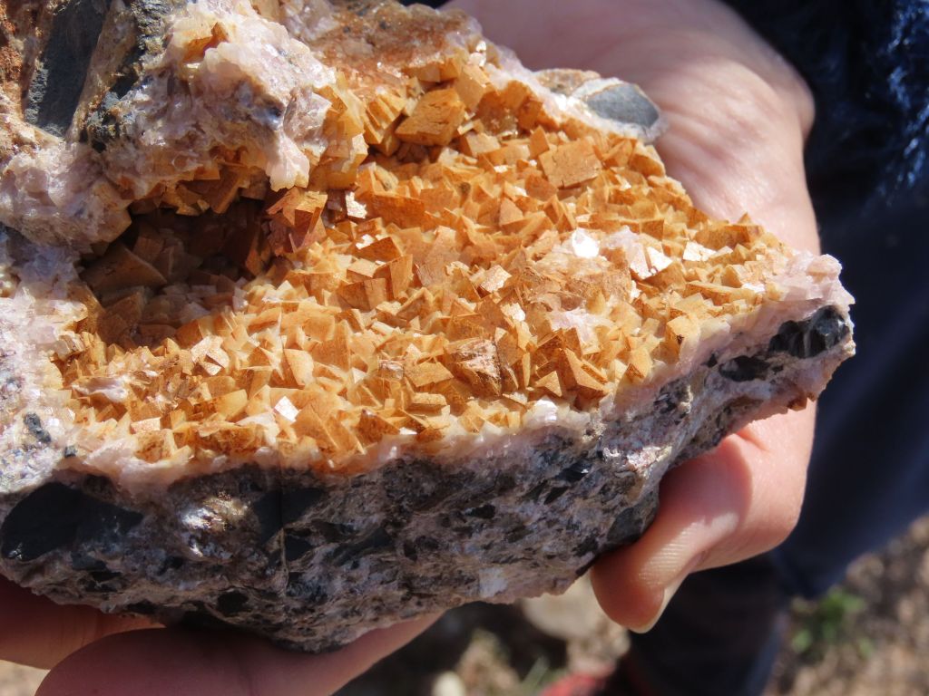 Un cop aparcats a les instal·lacions de la mina “Regia” (nova), vàrem iniciar la recerca de minerals i, de bon inici, ja van aparèixer exemplars interessants, com unes calcopirites molt maques, que va trobar un dels socis més jove, galena i esfalerita ben cristal·litzada, marcassita, nacrita i, més habitual, ankerita, dolomita i siderita.