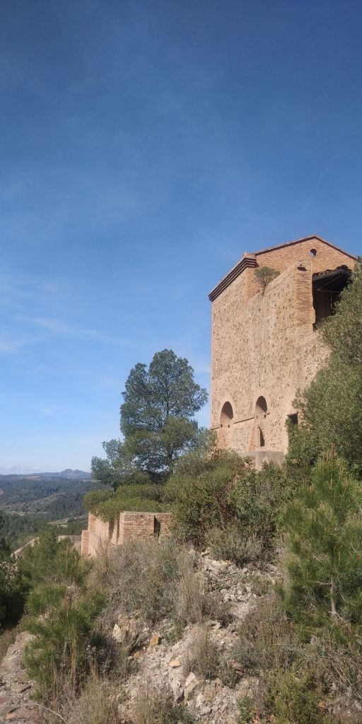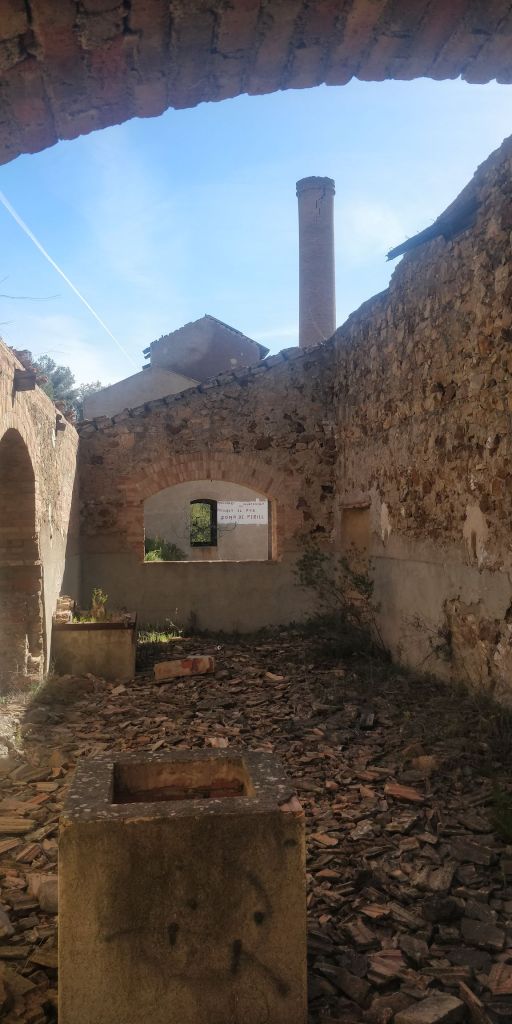 Ja a migdia, vàrem posar rumb cap a l’antic filó de barita sota les instal·lacions de la “Linda Mariquita” per a poder gaudir del merescut dinar sota l’ombra dels pins. Després de recuperar forces i donar un cop d’ull al filó, vàrem visitar l’entrada a la mina (tancada) i seguidament ens vàrem apropar fins a l’edifici principal, actualment rehabilitat i convertit en un centre d’interpretació de la Batalla de l’Ebre de 1938, ja que fou un antic hospital de campanya.