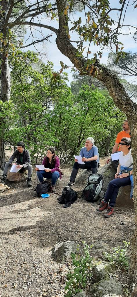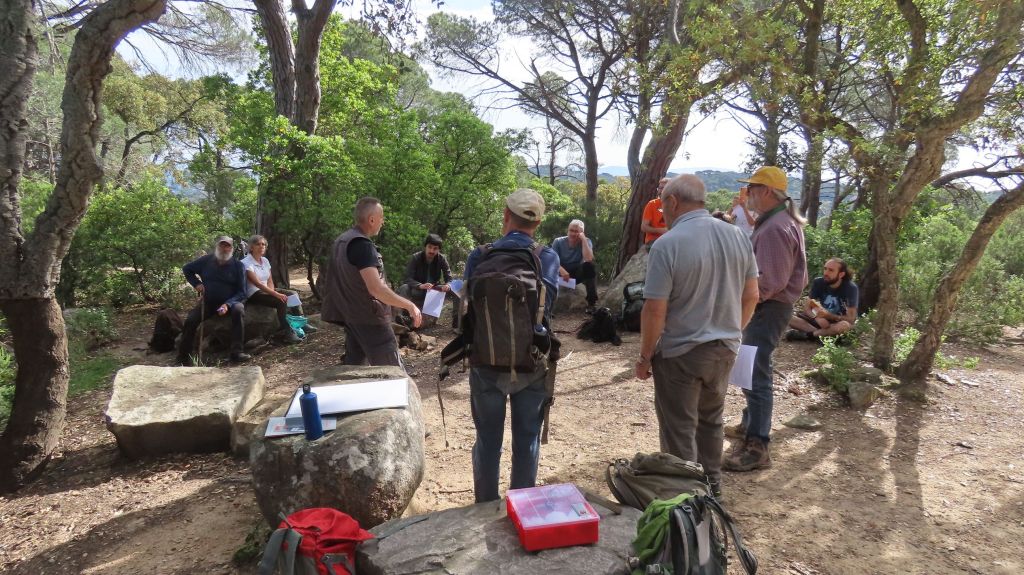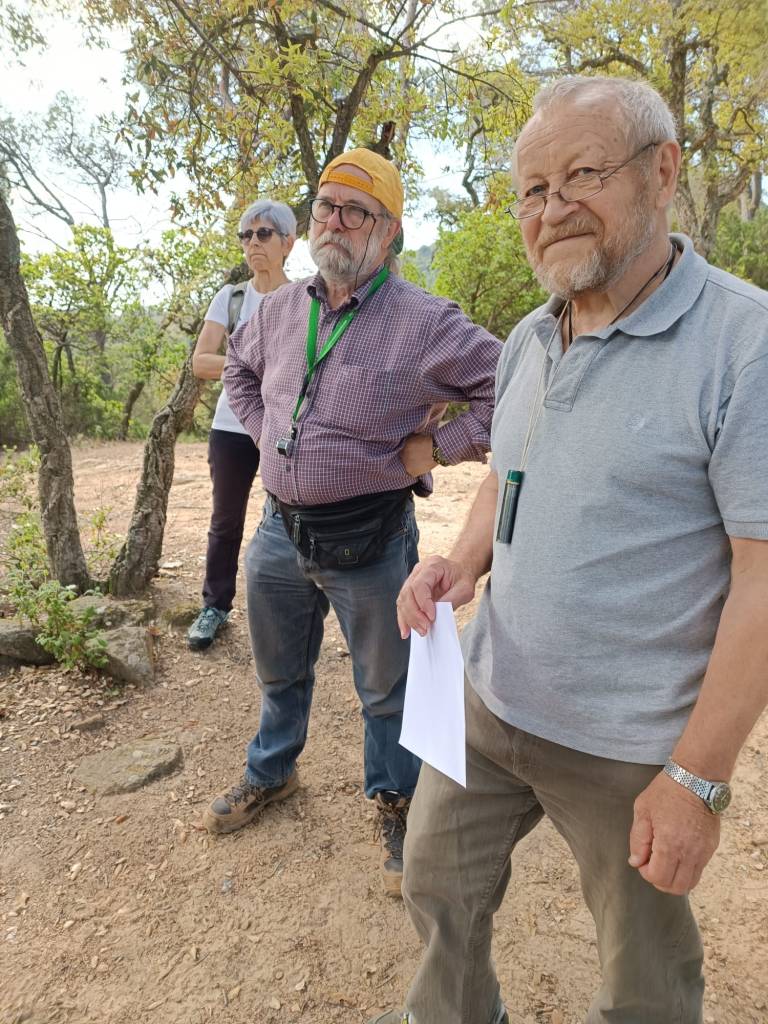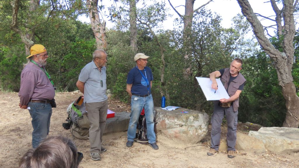 A l’hora prevista ja havien arribat tots els participants, així que després de les salutacions habituals i alguna que altra presentació (vam tenir el plaer de que ens acompanyés Sergey, un nou company d’afició vingut des del Kazakhstan), vam començar a caminar fins a la clariana del Roquell. En aquesta ocasió, Frederic Varela va ser l’encarregat de fer l’explicació geològica d’aquest indret tan especial, cosa que va fer de forma molt aclaridora tot i que no era gens fàcil.