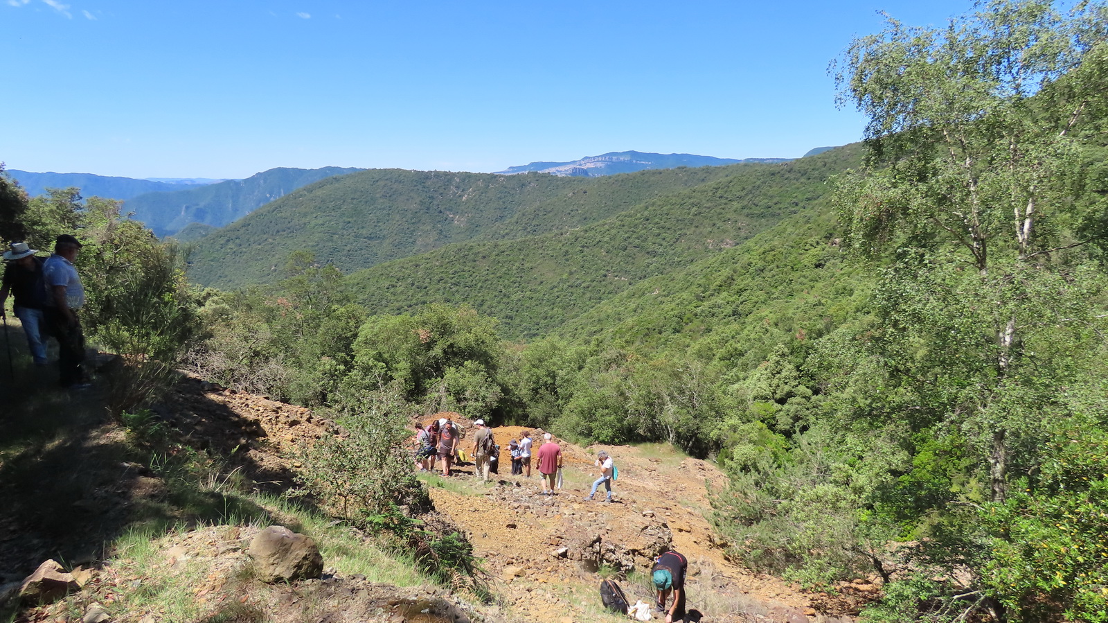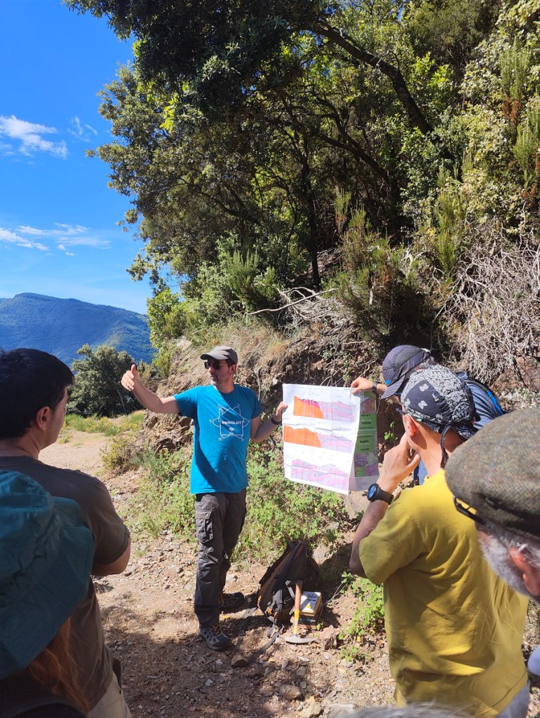 A mode introductori, explicar que l’aflorament-jaciment visitat és format per tres punts: Can Llavor, el Puig del Pedró i el Torn. La primera parada va ser al segon, ja que es trobava al mig de l’itinerari. Allà, en Lluís Clapés, amb la col·laboració d’en Josep Barnés, ens va fer una exhaustiva explicació sobre la geologia de la zona i el com i perquè s’han format les mineralitzacions existents. Us recomanem llegir el seu article a Infominer 63 (2/2015), per a ampliar el vostre coneixement sobre el tema i com a bon complement a aquesta crònica.