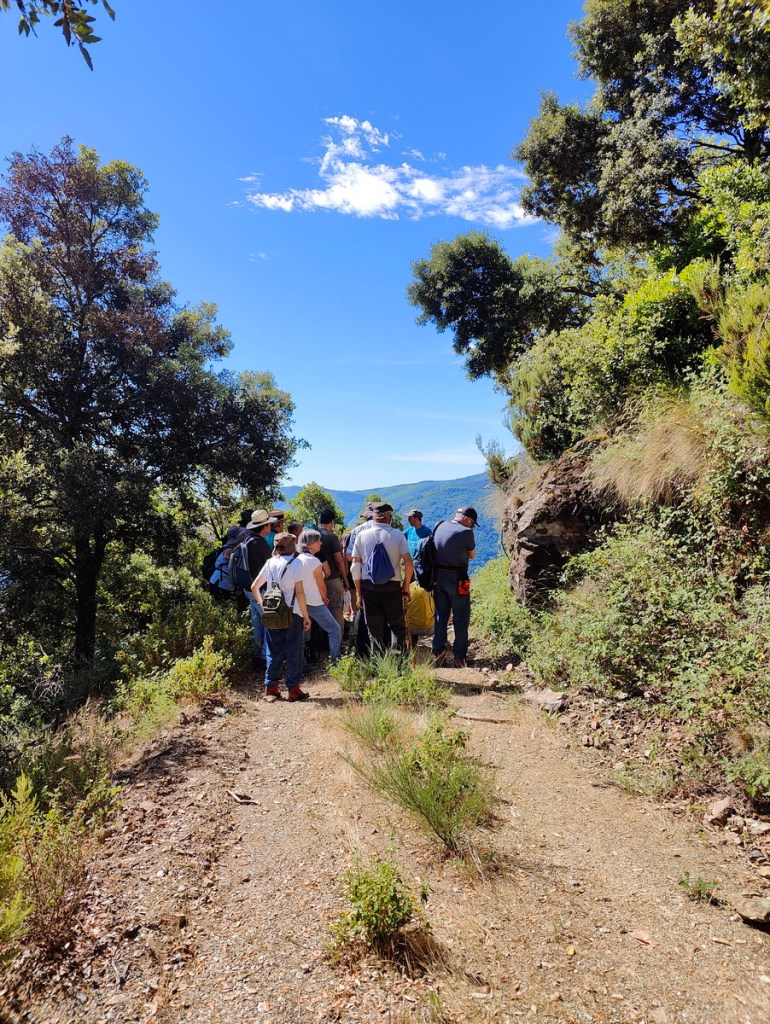 Repartits els participants optimitzant l’ocupació dels vehicles, es va enfilar carretera amunt per uns paisatges naturals d’una verdor sorprenent. Ja prop del cim, es va agafar el trencall per la pista forestal que, en el moment en que es va allunyar de les cases, va esdevenir un camí força irregular. Un cop a lloc, el darrer tram es va fer a peu.
