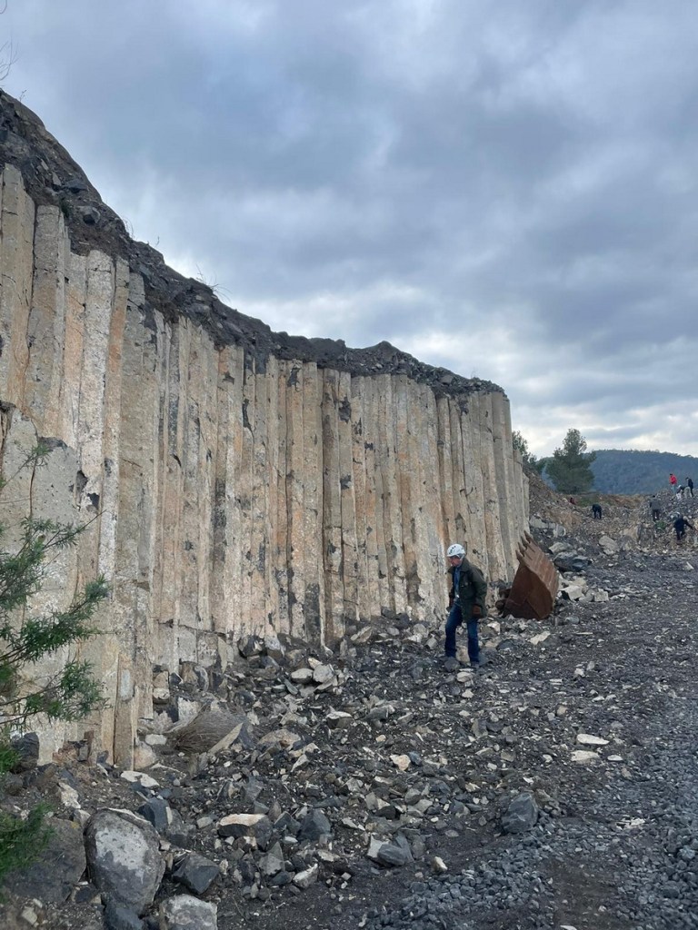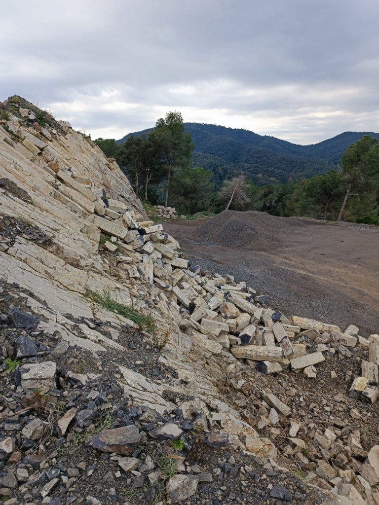 A més de trobar bones mostres, tothom va poder gaudir de la possibilitat de veure “in situ” l’espectacular aflorament de colades basàltiques en disposició columnar que afloren a la pedrera, la qual és també un mirador privilegiat ja que hi podem observar la falla per on passa la Tordera en el seu camí fins al mar.