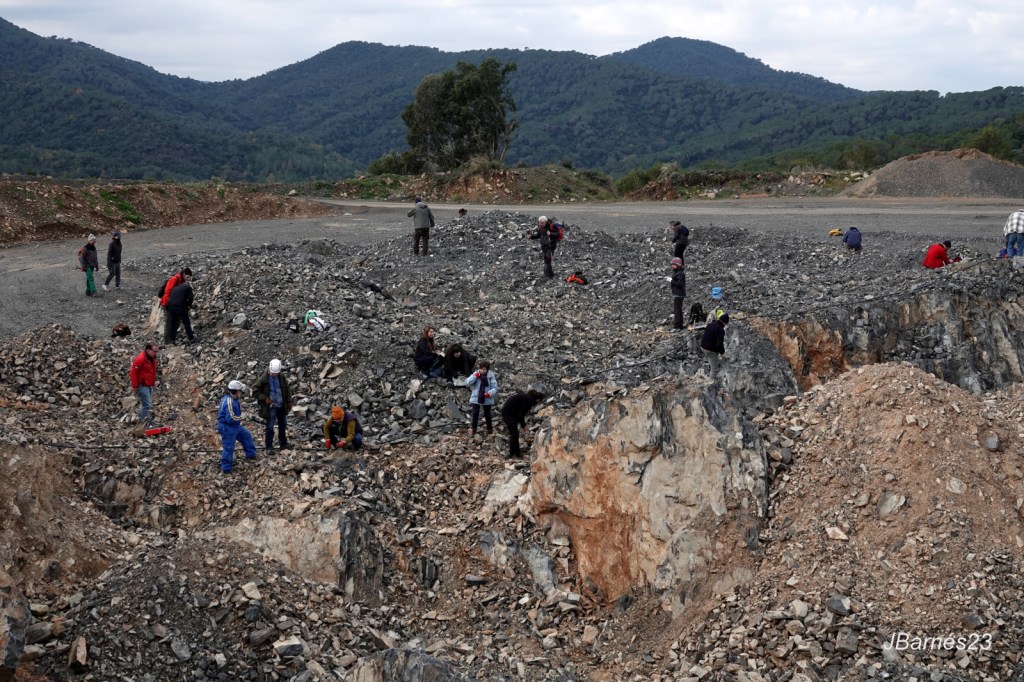 En aquesta ocasió, al contrari que l’anterior visita que vam poder fer, el temps ha estat de rigorós hivern però això no ha sigut cap impediment. A l’hora acordada vam ser-hi tots i, una vegada saludats, ens hem dirigit a la pedrera i després d’una bonica passejada amb bones vistes hem iniciat la recerca de minerals.