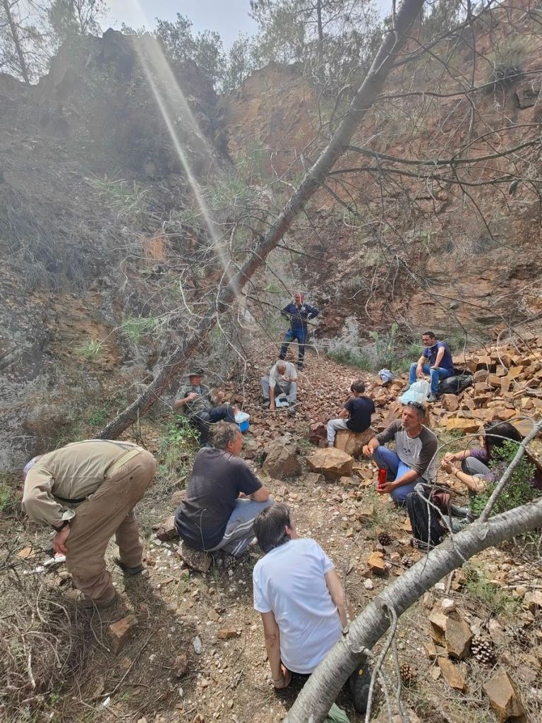 S’ha de destacar que, a aquelles hores, ens va començar a posar provar la calor, ja que tot i ser últim dissabte del mes d’abril semblava ple estiu. Els més valents van estar una estona cercant pels terregalls de la mina, mentre que una petita part del grup buscàvem més tímidament aixoplugats sota l’ombra.