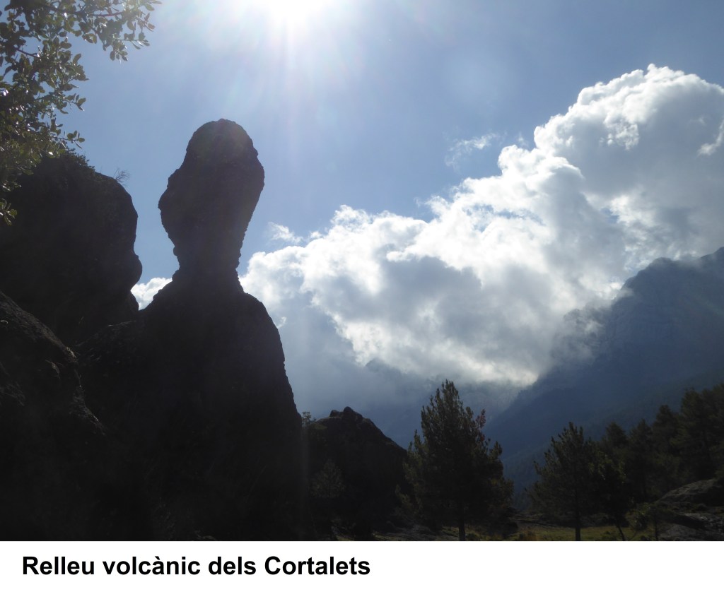Des del santuari ens desplacem uns metres cap al sud i, a l’alçada del Coll de les Basses, les citades roques (conegudes com a Relleu volcànic dels Cortalets) sobresurten enmig l’herba del prat com si fossin els ullals d’una bèstia colossal, amb unes formes d’erosió ben curioses.
