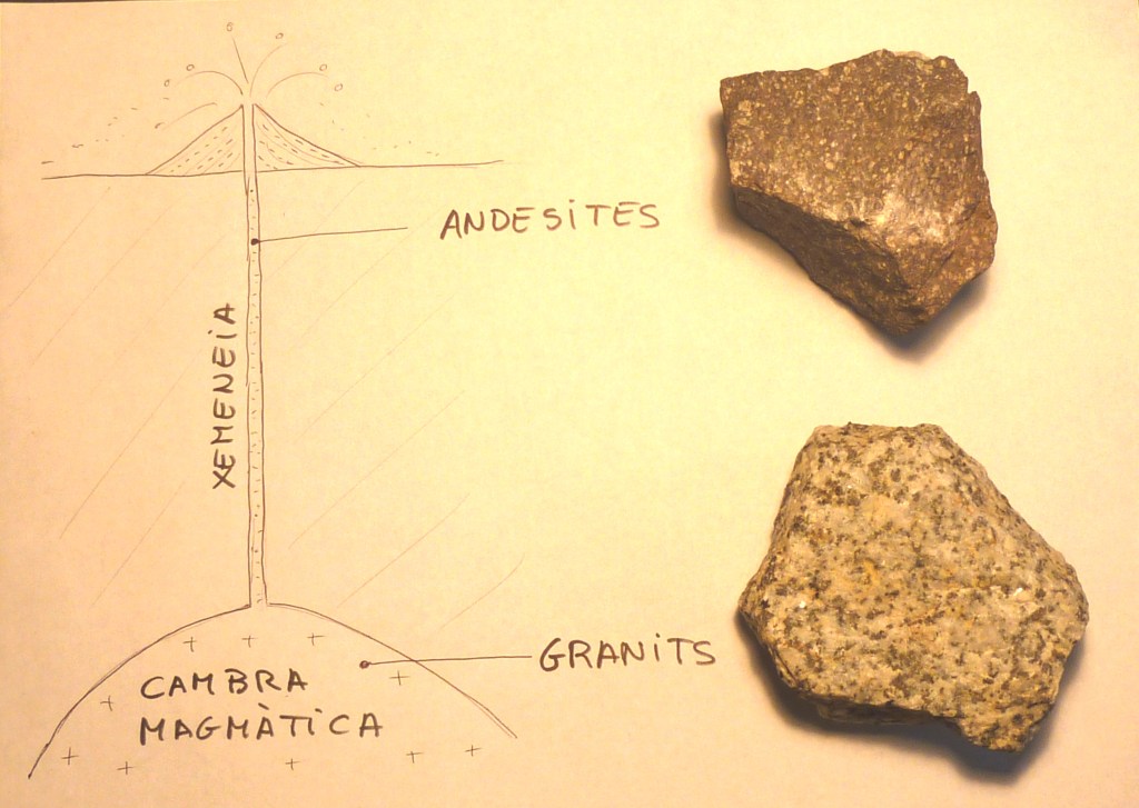 Es tracta d’unes roques anomenades andesites, emplaçades dins una xemeneia volcànica i amb la característica textura porfírica pròpia del refredament d’un magma en dos temps; això és, un primer refredament lent en profunditat, amb la formació de cristalls ben visibles (fenocristalls) principalment de plagiòclasi, i un refredament posterior més ràpid dins la xemeneia, amb la formació d’una matriu microcristal·lina o vítria que engloba els fenocristalls.