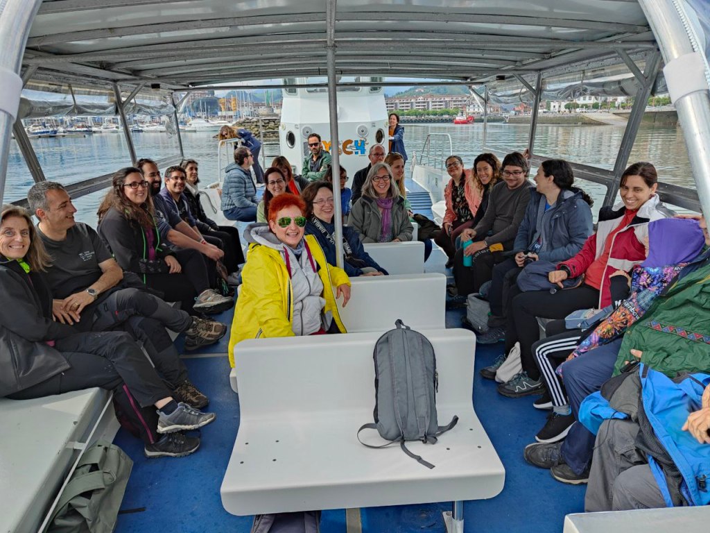 L’endemà es va fer la sortida de camp, a càrrec dels companys del Geopakea. Va consistir en una primera sortida des del port de Zumaia, amb vaixell, per a estudiar la geologia del flysch, des d’Algorri, on hi ha el límit K/T, fins la platja d’Elorriaga, gairebé a la mítica Sakoneta. Un cop a terra, es va complementar amb la visita a la rasa mareal també a Zumaia, on el centre d’atenció va ser el sistema de cartellera i senyalització, quins continguts destacaven, a quins tipus de públic els adreçaven i com es combinaven per arribar a tothom: des de qui només tenia interès en un atractiu turístic, qui ja tenia idees prèvies del que veuria o el sector més format. Tot això vetllant per tal que ningú desconnectés o quedés exclòs. La tasca divulgadora dels responsables del parc han demostrat que és excel·lent i que poden servir de mirall per a altres territoris que vulguin emular-los.