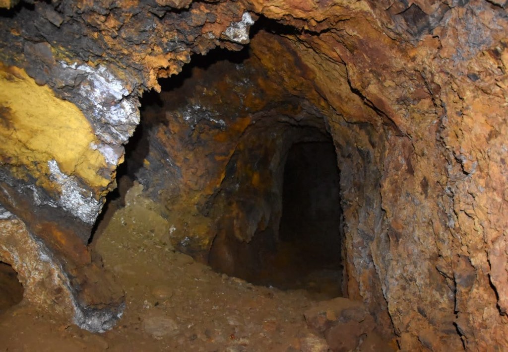 Finalment, a la part més superficial, s’hi forma un gossan on predominen òxids i hidròxids de ferro, amb fenòmens de silicificació. Aquest, en tractar-se d’una mena lliure de sulfurs, es va voler aprofitar en determinats moments per a beneficiar-ne el ferro.