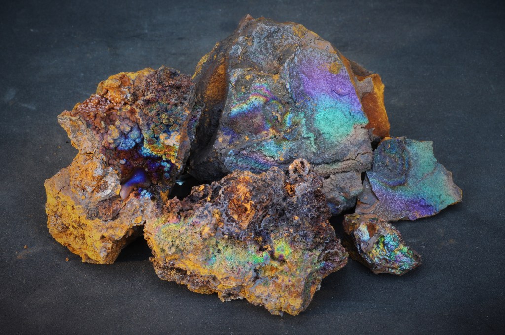 A banda dels blancs i transparents, trobem colors negres i grisos per la presència d’òxids de manganès, així com rosats i vermellosos pels de ferro.