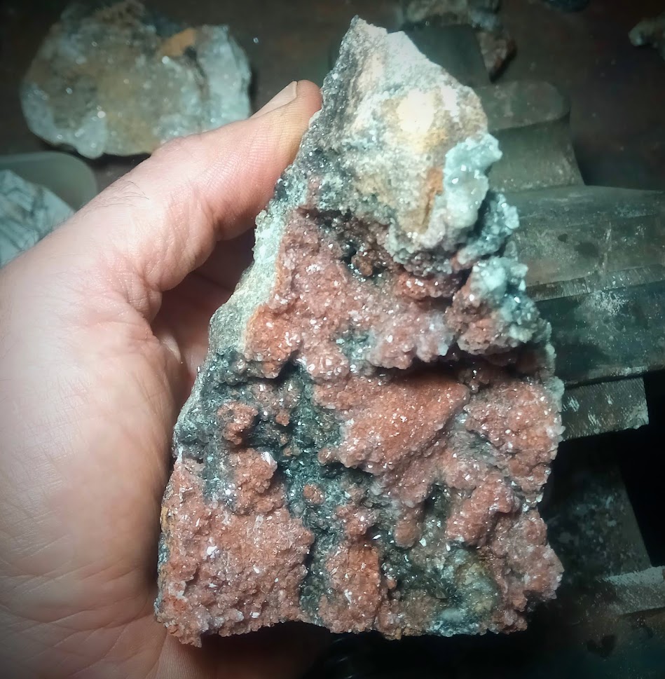 També hem identificat ‘de visu’ aragonita en cristalls radiats, cerussita recobrint la galena, indicis de malaquita i atzurita, especialment en la zona de l’antiga pedrera (loc. 2) que encara avui és accessible.