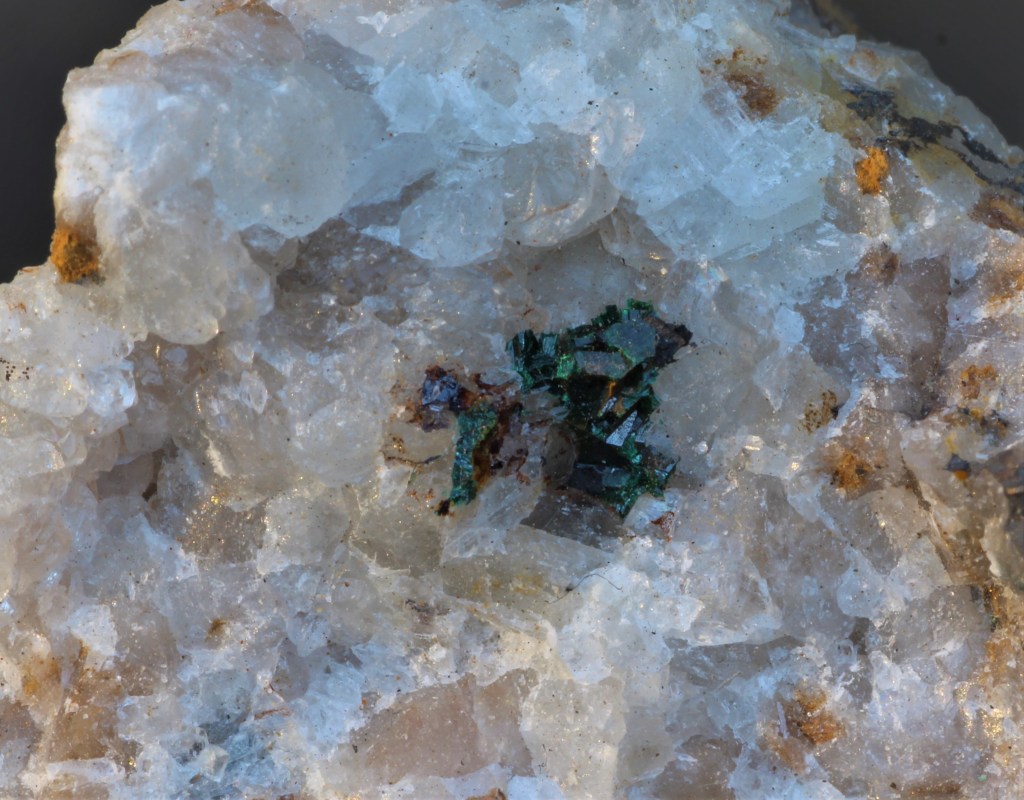 Associat als marbres, no apareix en cap de les zones estudiades a excepció de la mina de la part superior on amb la goethita podem identificar quars ben cristal·litzat de mida submil·limètrica. De fet, cal una lupa o binocular per a identificar-lo correctament. En algunes parts de la mina, la goethita ha desaparegut totalment i resta només una matriu porosa de quars de color blanc.