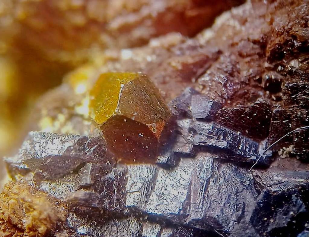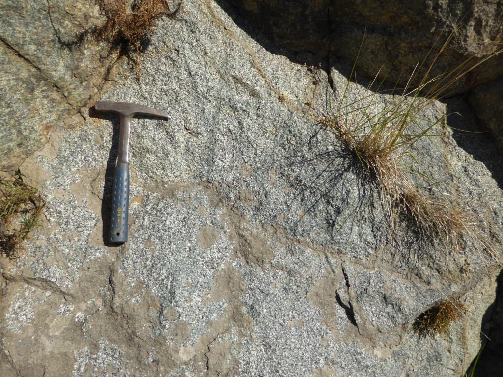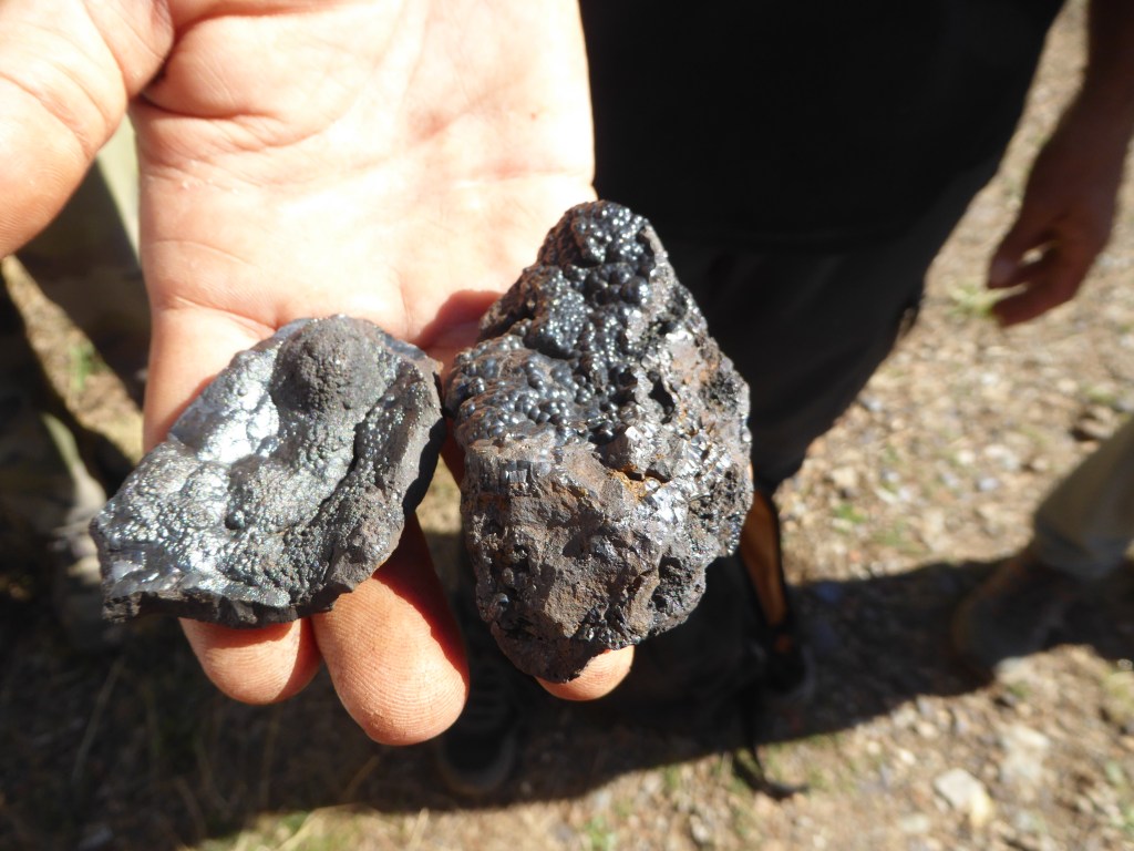 Després de dinar continuem pujant per accedir a un gran espai ple de roques per donar i vendre, sota un sol de justícia. Hem deixat enrere els granitoids i ara ens trobem damunt unes roques carbonatades metamorfitzades, tipus marbres. Aquí ens escampem una mica per tot arreu i aviat es comencen a trobar algunes coses interessants, sobretot quan, a casa, es netegen les mostres i s’observen sota la lupa binocular: rosetes d’hematites, cristalls de siderita, de pirita, de calcita, d’hemimorfita….