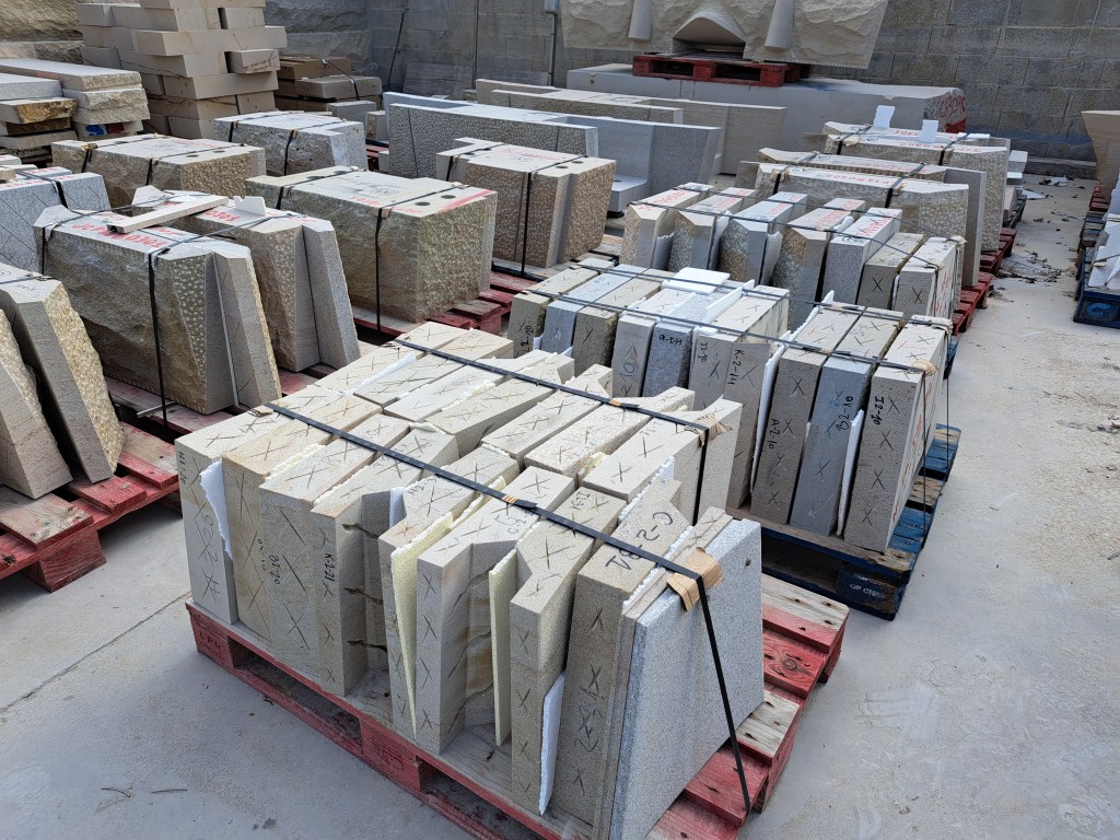 Com a curiositat, en Dani ens mostra un grup de lloses, empaquetades i certificades, i una gran llinda, que seran un pòrtic de la Sagrada Família però que es muntaran allà mateix com si fos un gran trencaclosques. També ens diu, amb pena, que aquesta roca és coneguda mundialment com “Pedra Sènia” perquè el mot “Ulldecona” és més difícil de pronunciar…