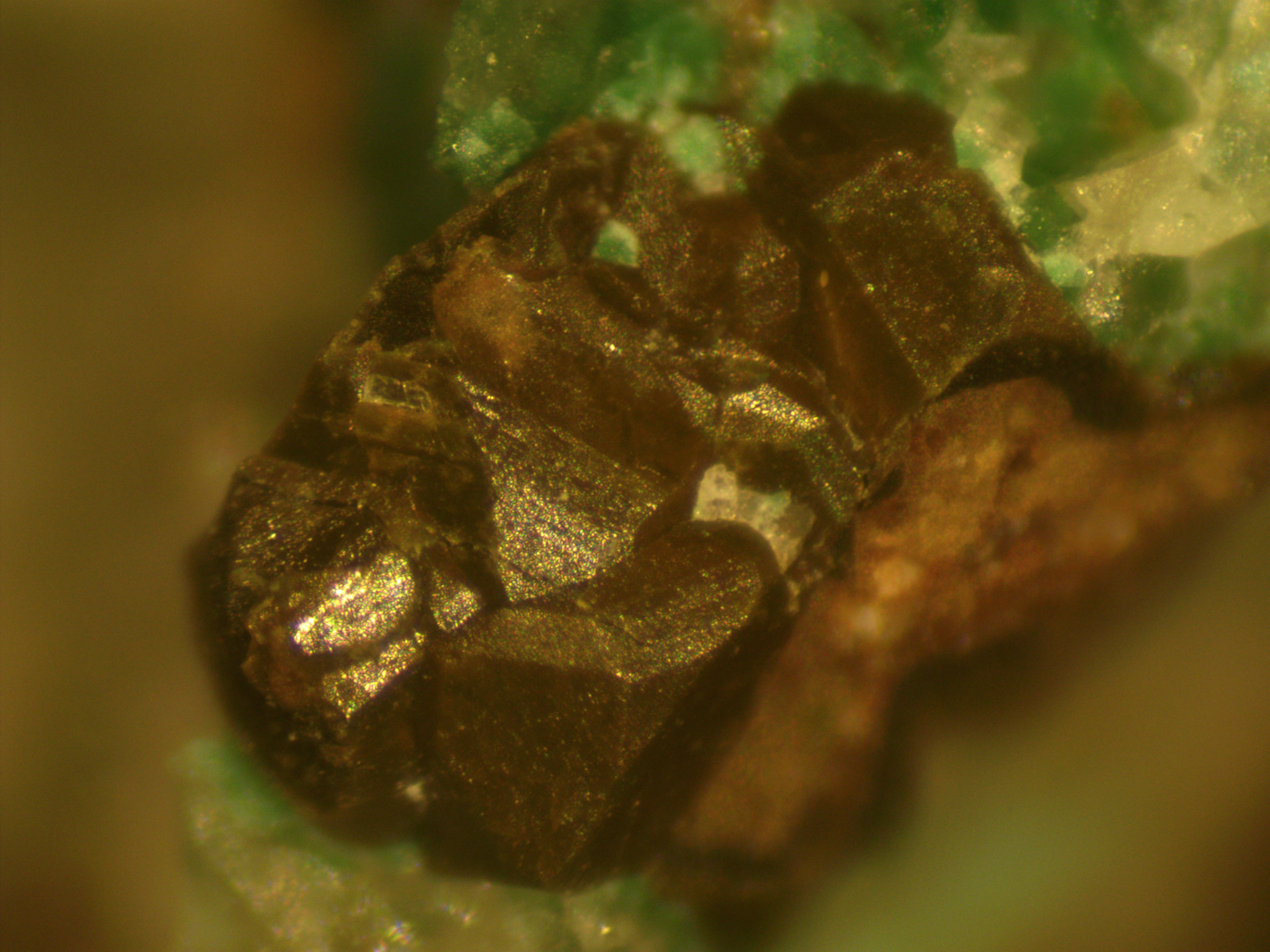 Malauradament, estudis posteriors van concloure que no es tractava d’un nou mineral sinó d’una barreja de malaquita i estibiconita. Aprofitant aquesta anècdota, hem estudiat alguns exemplars del jaciment per a poder confirmar aquesta conclusió.