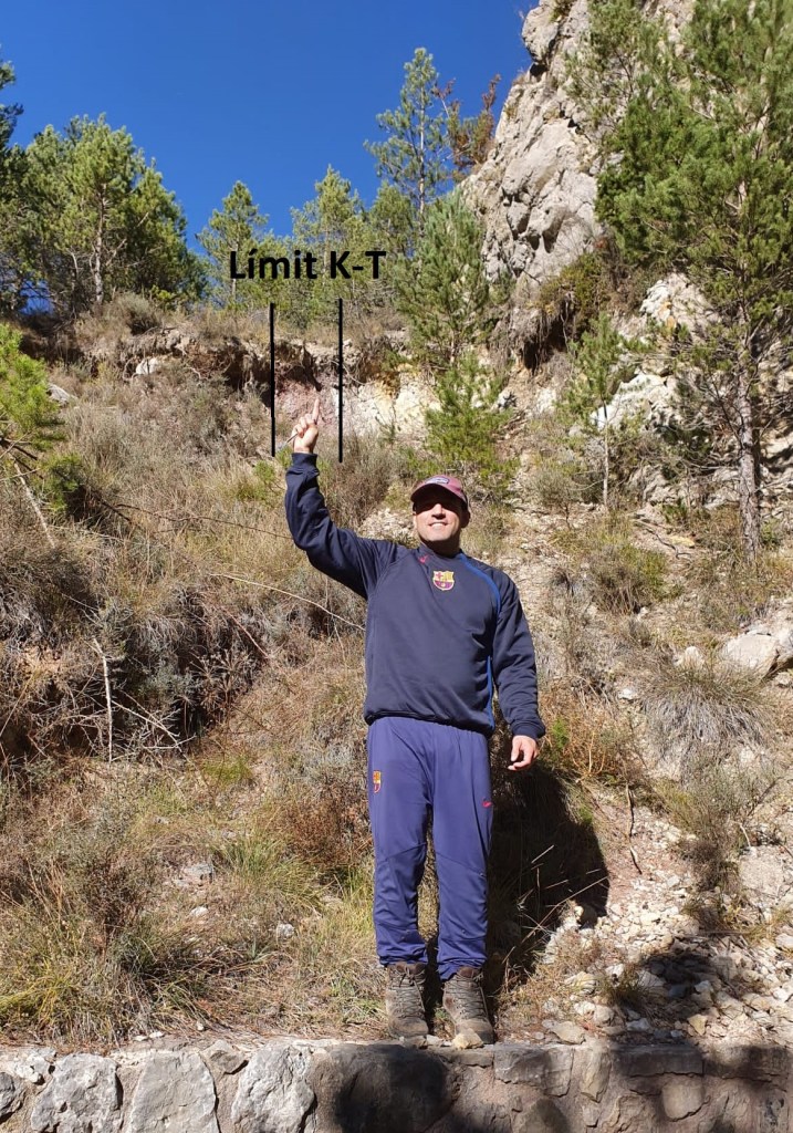 Just abans de dinar, encara tenim temps d’anar fins l’espectacular Mirador de Vallcebre on les vagonetes del telefèric creuaven la serra de l’Empalomar mitjançant un parell de túnels excavats a la roca. A l’entrada del primer túnel un plafó ens informa que, després d’un paquet de gresos, es troba el cèlebre límit K-T (K de Kreide, que és “Cretaci” en alemany, i T de Terciari) moment en que tingué lloc la darrera gran extinció de fa uns 65 milions d’anys, diuen que degut a l’impacte d’un asteròide.