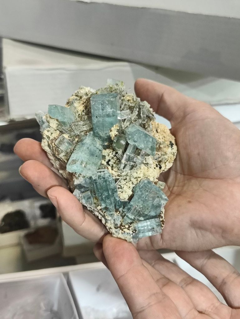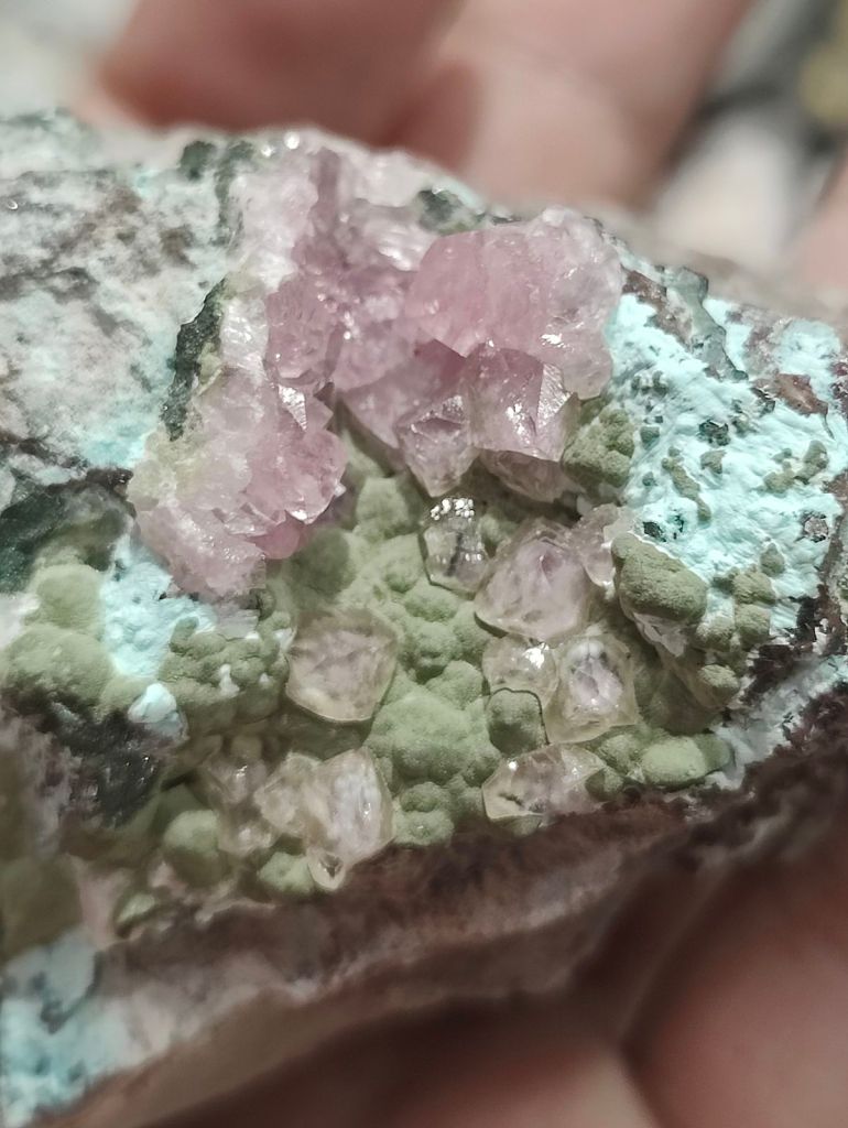 De més a prop de casa, es van poder trobar minerals del Cap de Creus: beril, latzulita, cianita pseidomòrfica d’andalusita…, extrets abans dels anys vuitanta; fosfats del turó de Montcada, variscita, crandallita; fluorita de Gualba de Dalt; els clàssics minerals de la pedrera “Berta”; una molt bonica andradita de la mina del Socau i molts més.