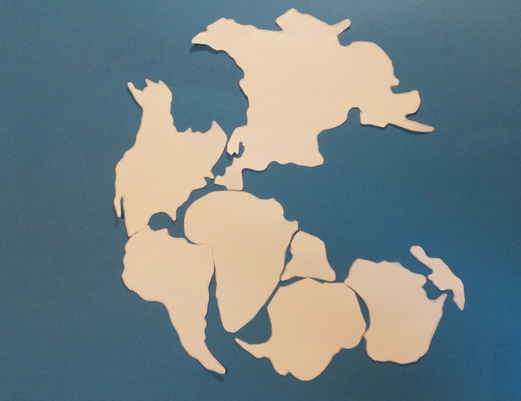 Avui toca “viatjar” molt lluny en el temps, a l’època de la col·lisió dels dos grans continents: Lauràsia (situat al nord) i Gondwana (situat al sud), separats per un oceà anomenat oceà Reic, la unió dels quals va provocar l’aixecament de la serralada Herciniana i la formació del gran continent de Pangea ara fa uns 300 milions d’anys; tot això explicat sobre una taula de pícnic, amb retalls de paper com si fossin un trencaclosques i amb un fred que ens deixa ben garratibats… i encara sort que fa un bon sol!