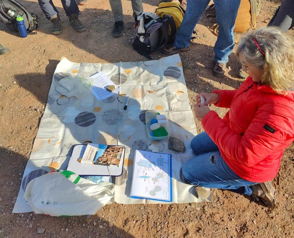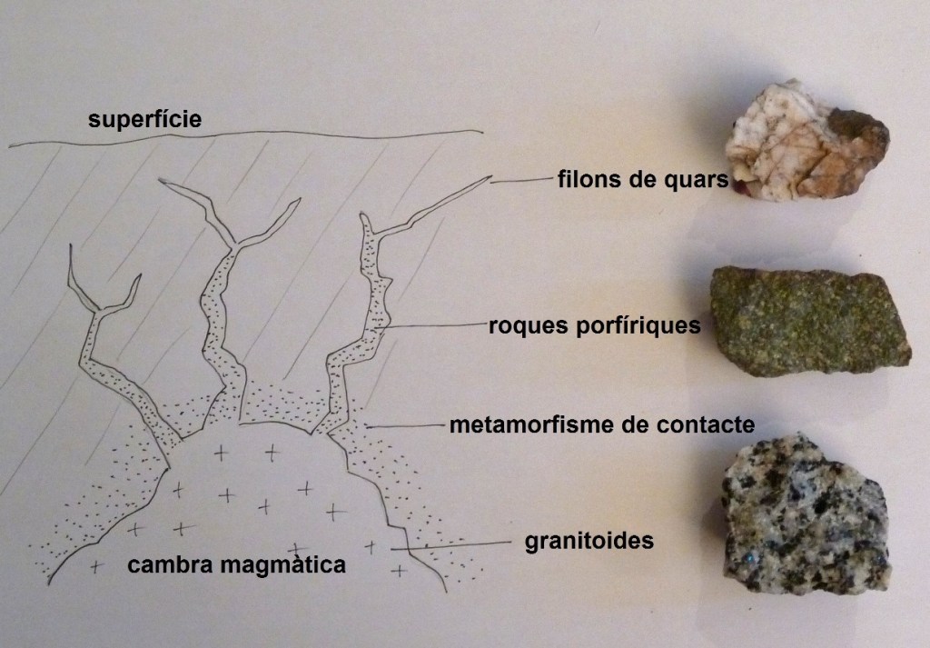 Acte seguit, i mitjançant diversos elements didàctics, es fa un repàs sobre la tectònica de plaques i dels cicles orogènics per a explicar l’origen de les pissarres (roques metamòrfiques) que hem observat i que són el resultat de la transformació d’antigues roques sedimentàries, de tipus argilós, per causa de la intensa deformació que va tenir lloc durant l’orogènia herciniana, ocorreguda al Carbonífer superior (entre el Namurià i el Westfalià), ara fa entre 333 i 303 milions d’anys.
