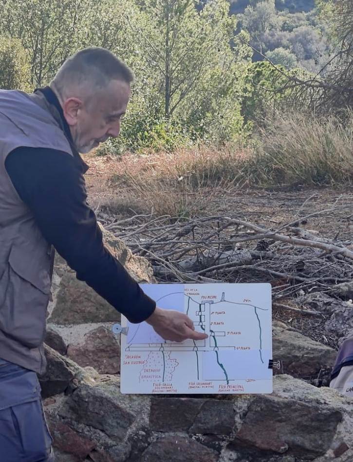 Al bell mig de les instal·lacions superiors d’aquesta mina, i sota l’ombra d’uns pins perquè comença a caure un sol de justícia, fem la segona parada del dia. Aquí, amb esquemes molt entenedors, Frederic ens explica l’evolució de l’explotació del plom des dels temps del romans fins que s’abandona per causa, principalment, de les destrosses ocasionades pels aiguats de l’any 1962.