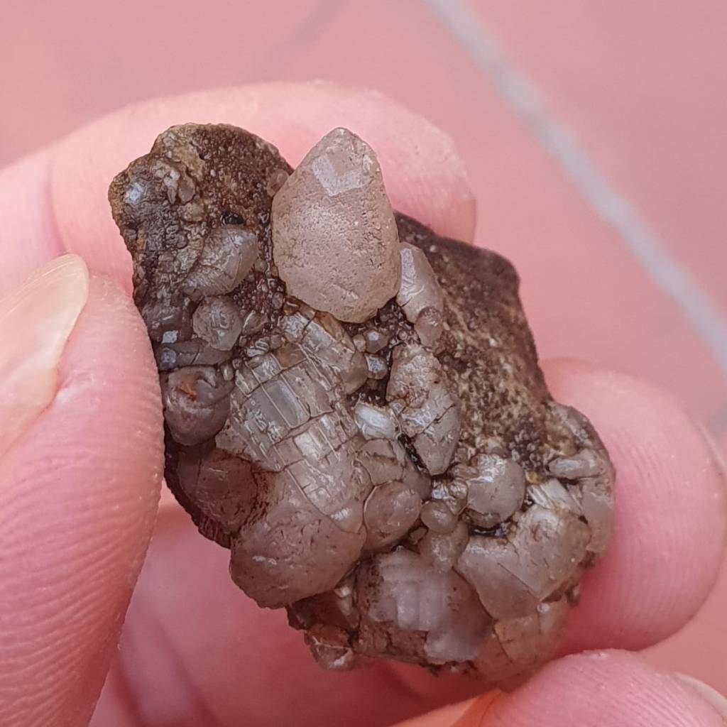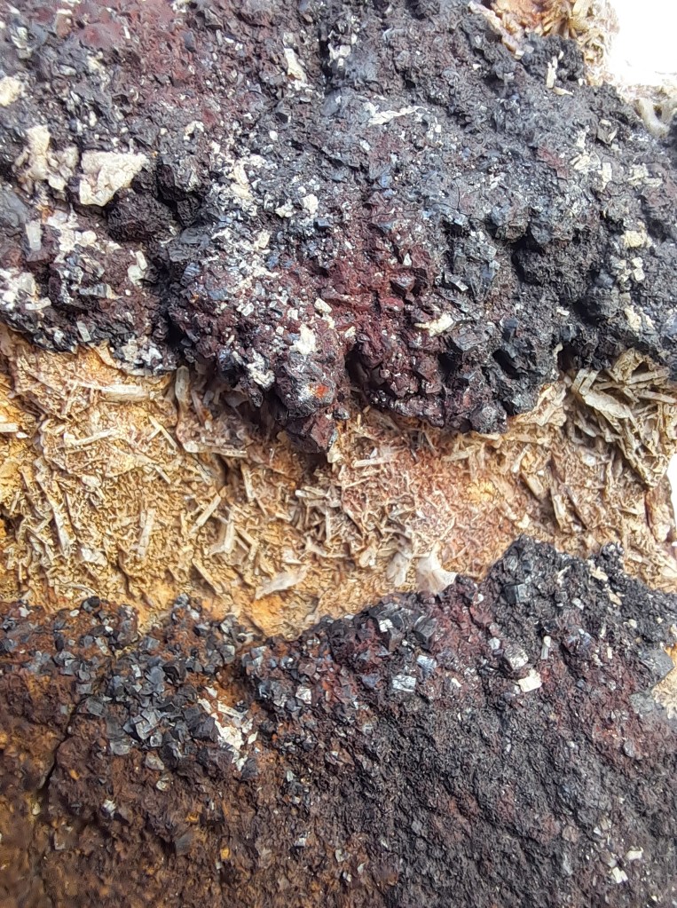 De retorn per la pista, uns quants encara tenim temps de baixar a un aflorament conegut com “la Trancada”, on apareixen alguns filonets de barita cristal·litzada amb fluorita i pirita goethitzada, i també uns bonics exemples d’esquistositat plegada.