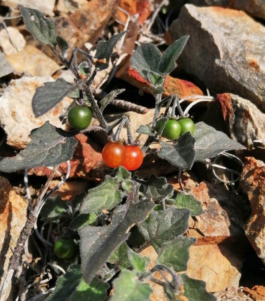 Malgrat que el terregall està molt “visitat” i poblat per la vegetació, els ulls més experts encara troben alguns cristallets de galena i de calcita. Entre la vegetació hem trobat, però, una planta força curiosa: es tracta de la morella vera o tomàquet del diable (Solanum nigrum), procedent d’Amèrica del Sud i emparentada amb els tomàquets, l’albergínia i el tabac. Els seus fruits, en forma de baies, són molt tòxics quan són verds, però quan estan madurs es tornen negres i d’aquí ve el seu nom.