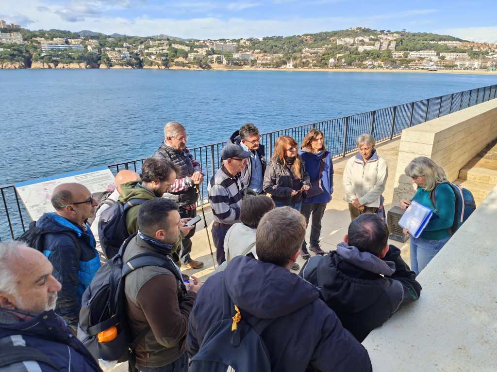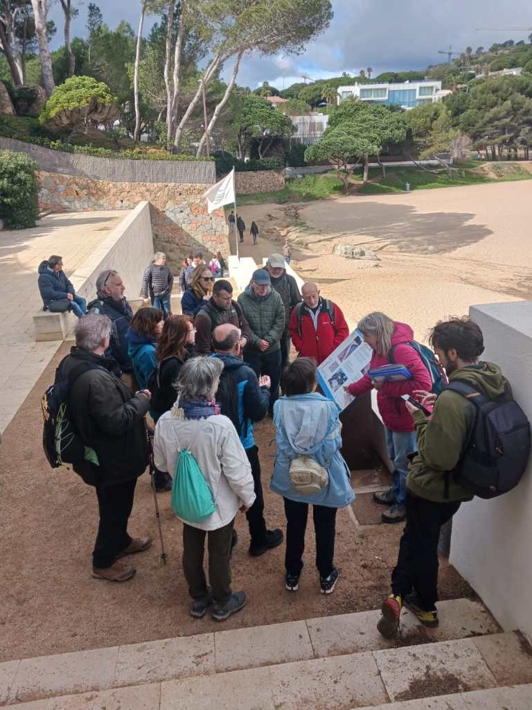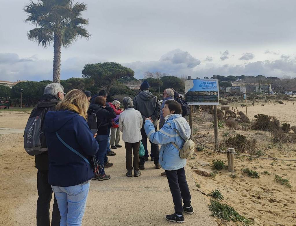 Així és que ben aviat i sota un cel un xic ennuvolat, ens trobem els participants que comencem l’itinerari a la platja de Sant Pol (municipi de Sant Feliu de Guíxols) on se’ns explica com es distribueixen els sediments que, transportats per les rieres des de les muntanyes properes, arriben a la costa tot formant les platges i les barreres de dunes que podem contemplar al llarg del passeig marítim.