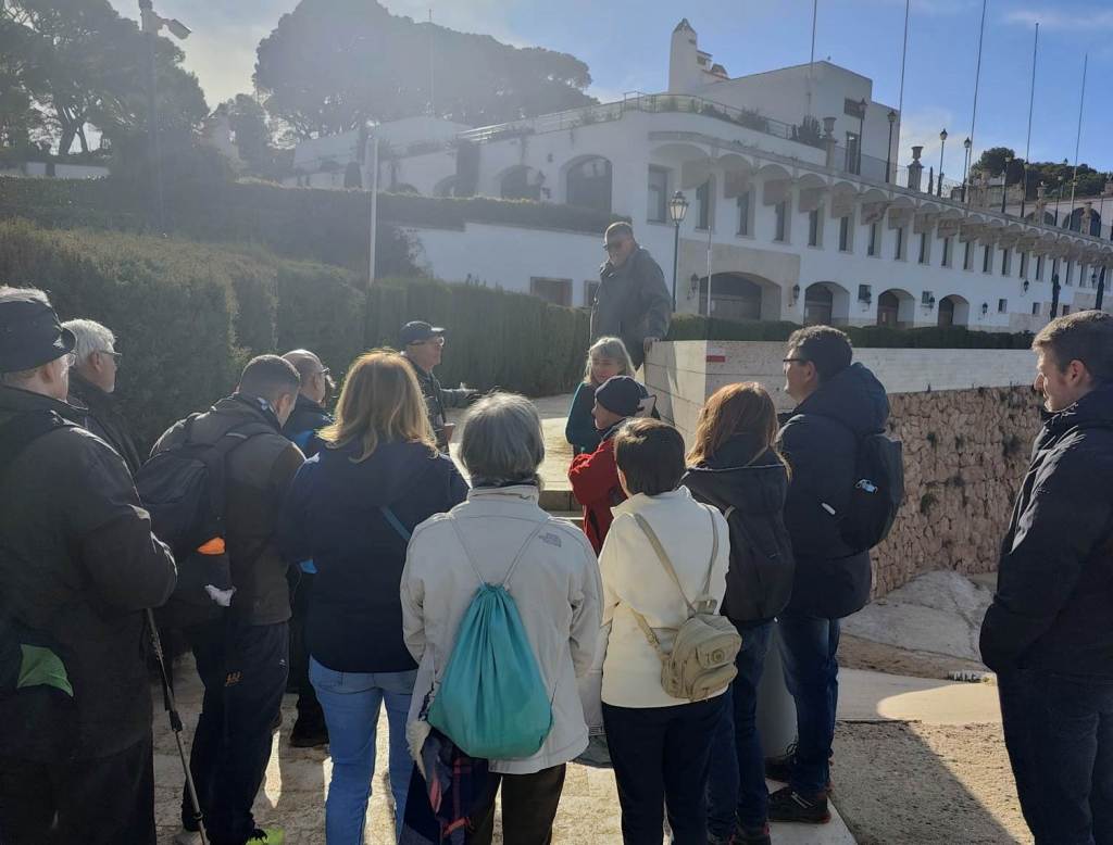 Així, arribem a la gran i enlluernadora plaça, anomenada el Mirador de s’Agaró, on es troba un dels elements més emblemàtics del Camí de Ronda: una glorieta circular feta de travertí, és clar que sí, on aprofitem per a fer la foto de grup per a tenir-ne un bon record.