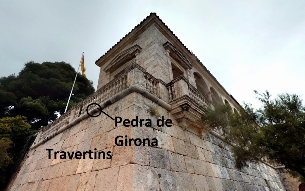 Els seus murs estan folrats amb una pedra de color clar i molt tova, anomenada travertí (o pedra tosca), procedent d’unes pedreres del Pla de l’Estany i formada per la precipitació de carbonat càlcic damunt de tiges i algues en surgències i salts d’aigua. En Ventu ens explica que la blancor de les parets servia de referència als pescadors de la zona i d’aquí ve el seu nom i el fet que s’hagi convertit en un símbol de s’Agaró. Per això moltes cases tenen algun element construït amb aquesta roca tan fràgil.