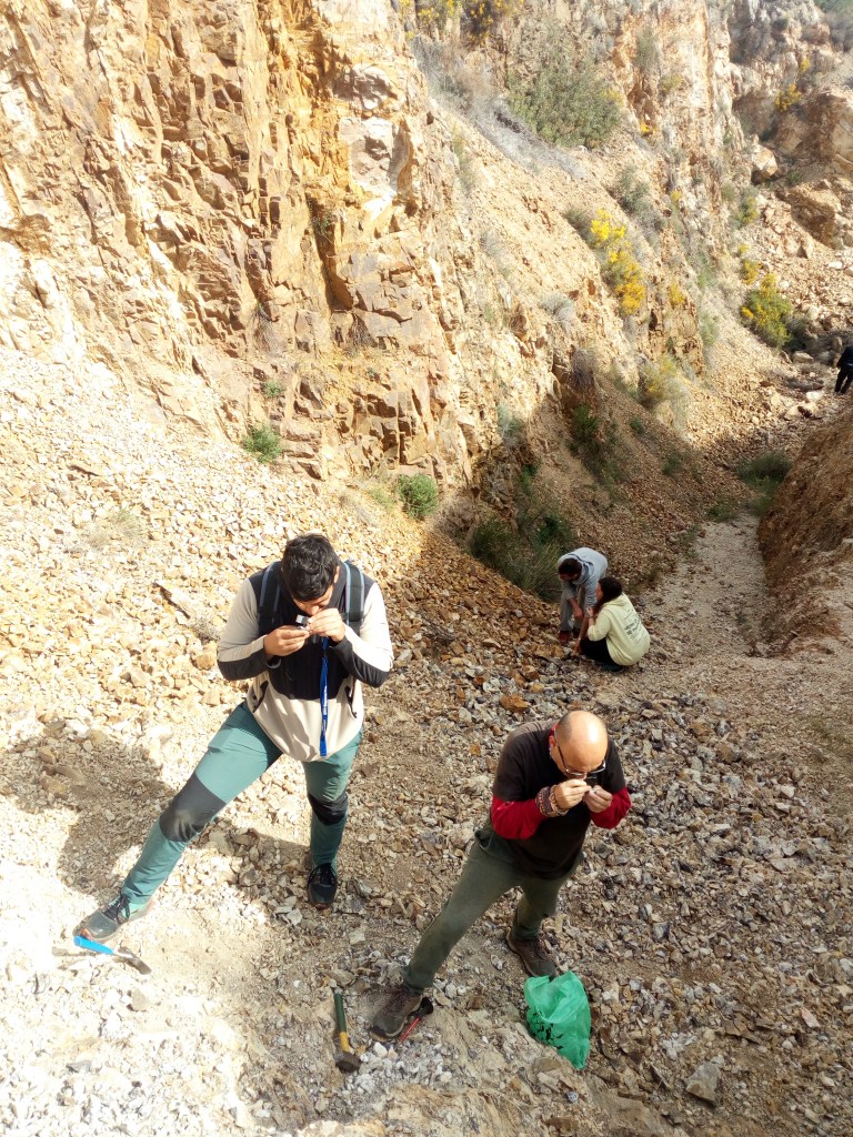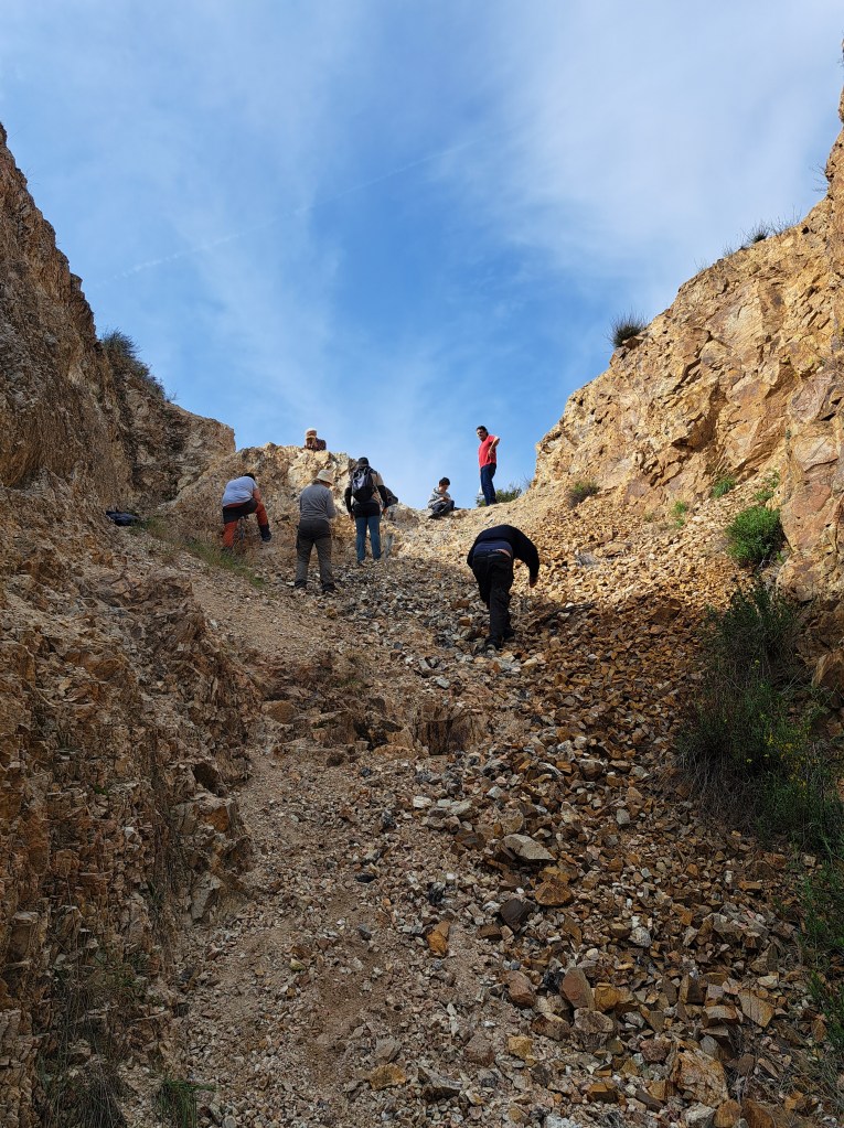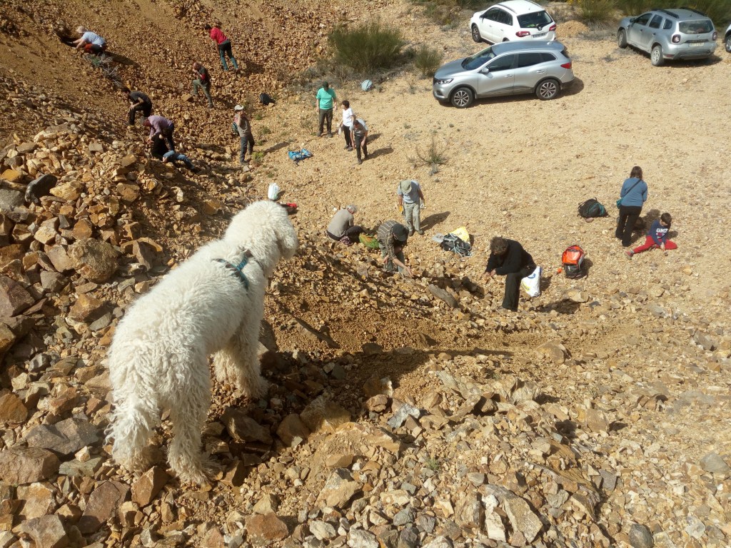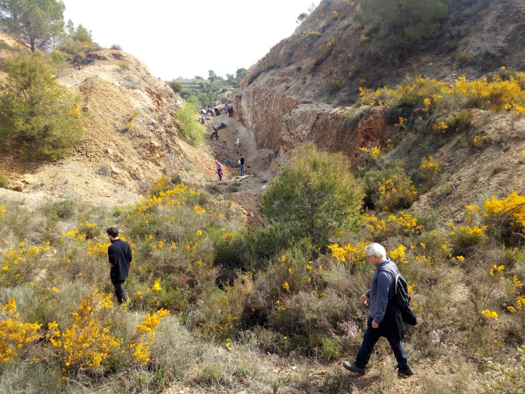 En acabat el dinar, tornem als cotxes per a enfilar la carretera local en direcció al Molar. A mitja pujada fem una parada a uns terregalls que es troben entre les mines “Jalapa” i “Raimunda” on, a més de galena, també trobem siderita, esfalerita, bonics cristalls de cerussita i pirita (o marcassita). Malgrat la forta sequera, els amants de les orquídies també van poder observar alguns exemplars d’Ophrys forestieri. Finalment aprofitem a fer-nos la foto de grup per a tenir un bon record de tan interessant i profitosa sortida.